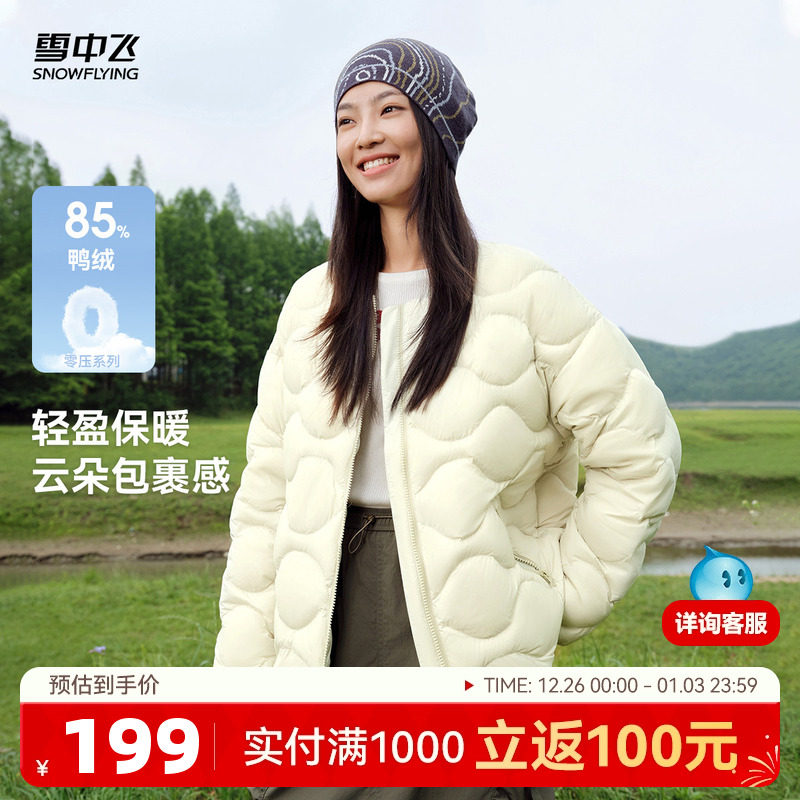 雪中飞2025冬新款女士短款圆领羽绒服葫芦纹轻柔舒适时尚气质