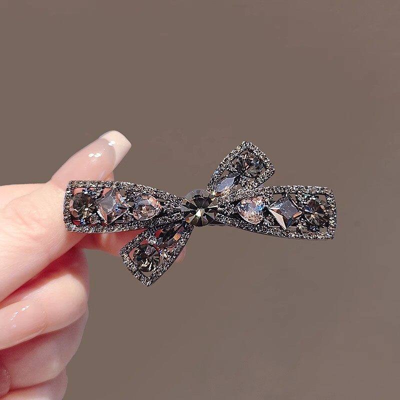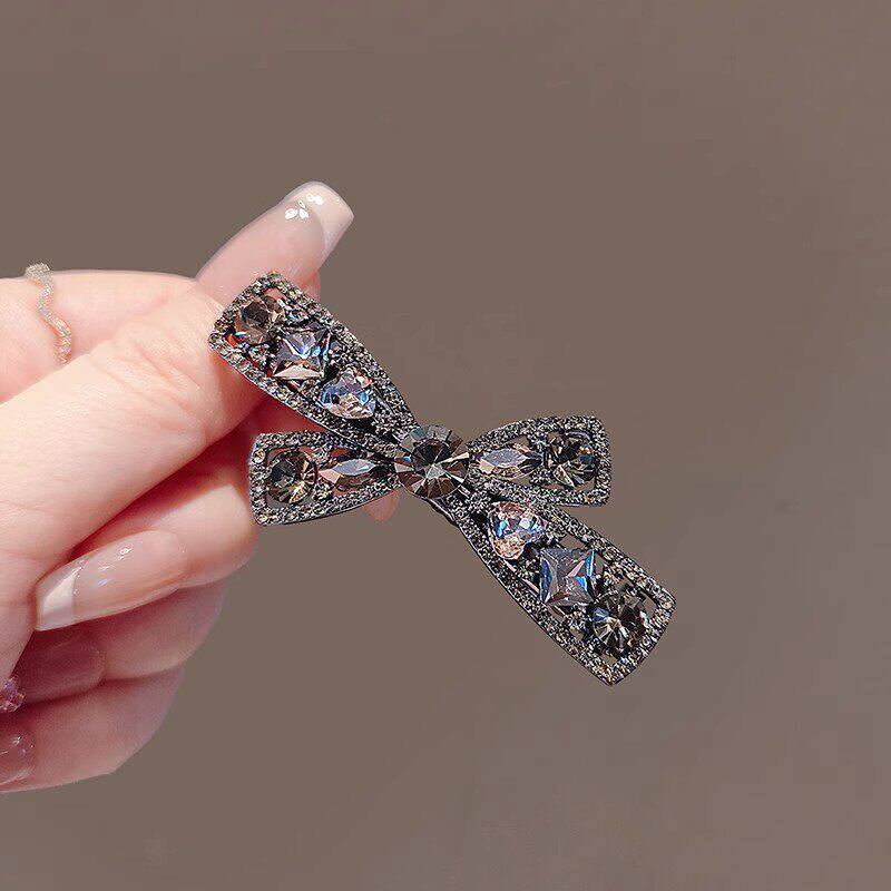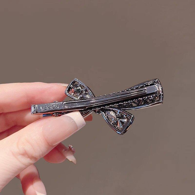 新款镂空色水钻侧边刘海夹韩系时尚碎发发卡鸭嘴夹发夹女蝴蝶结