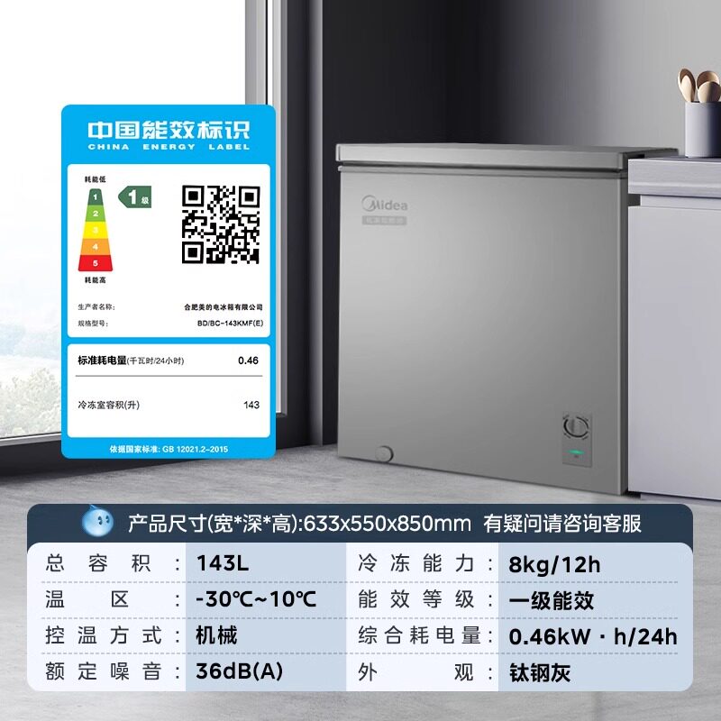 美的143L小冰柜家用两用小型冷柜一级节能冷冻冷藏减霜官方小冰箱