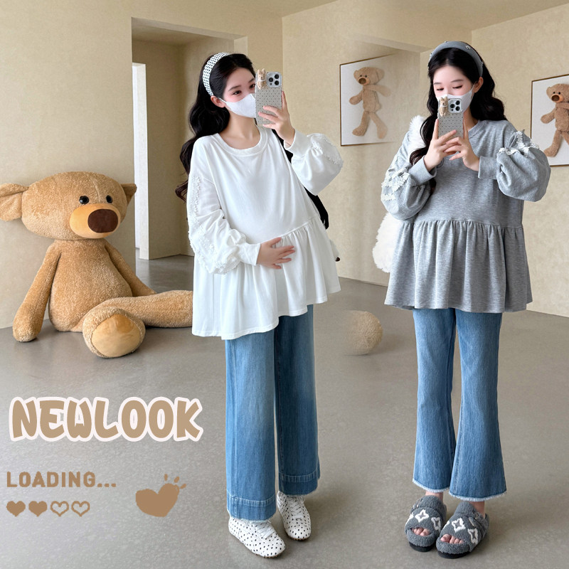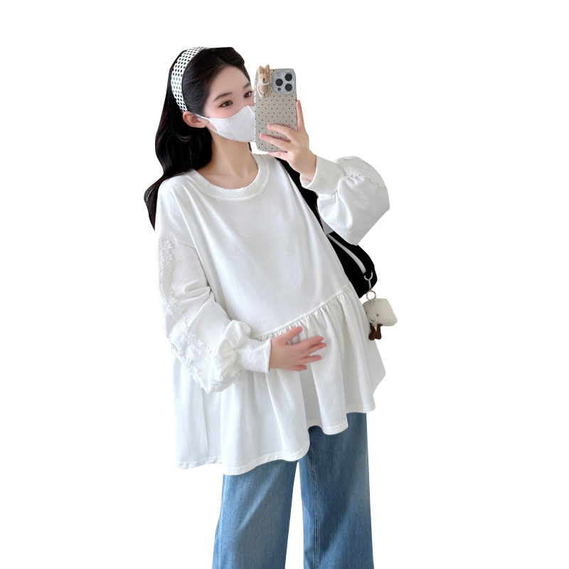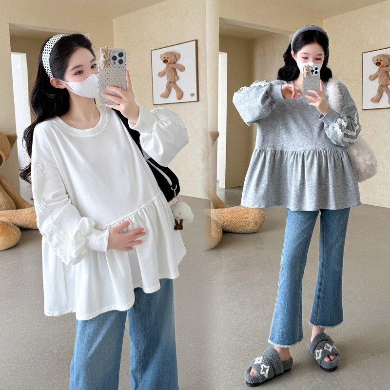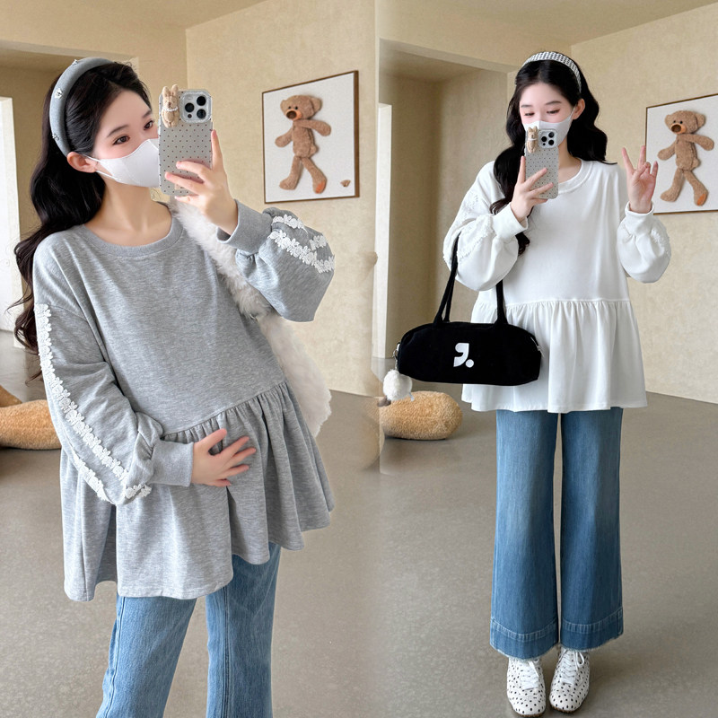 婧麒孕妇卫衣春装蕾丝花边拼接2026新款春秋韩版娃娃衫减龄打底衫