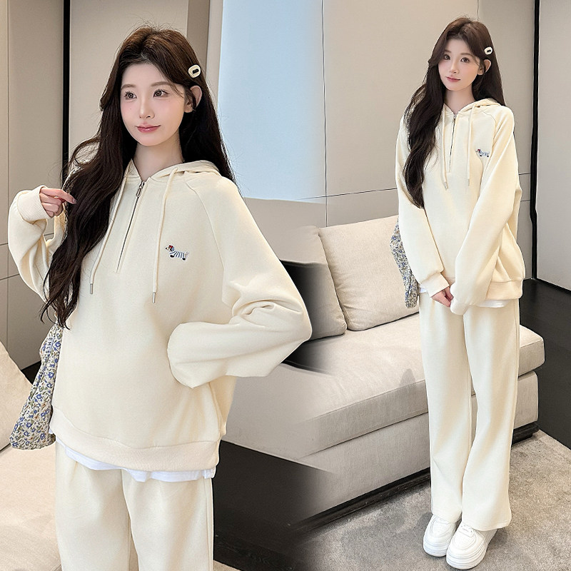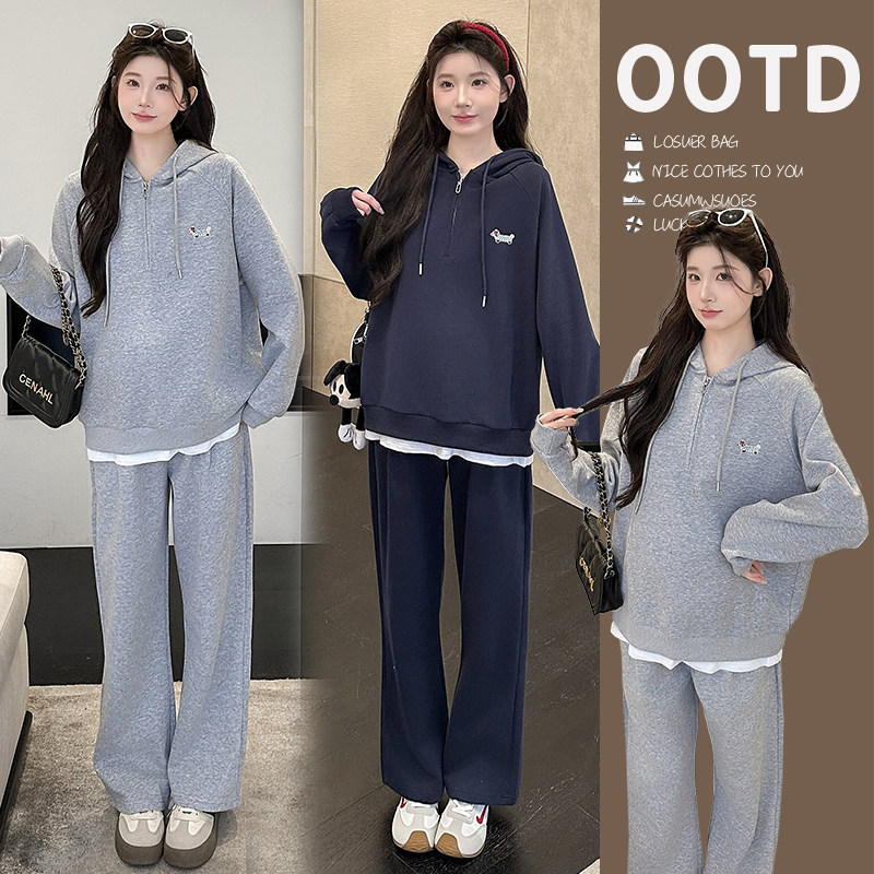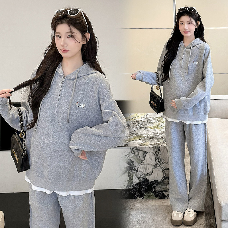 婧麒新款孕妇装冬装高级假两件连帽卫衣孕期时尚裤子洋气孕妇套装
