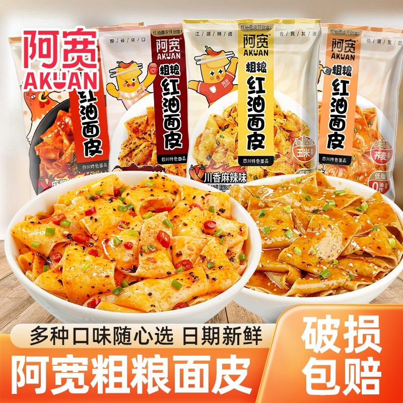 阿宽粗粮红油面皮荞麦玉米火鸡面非油炸干拌宽面皮充饥夜宵方便面