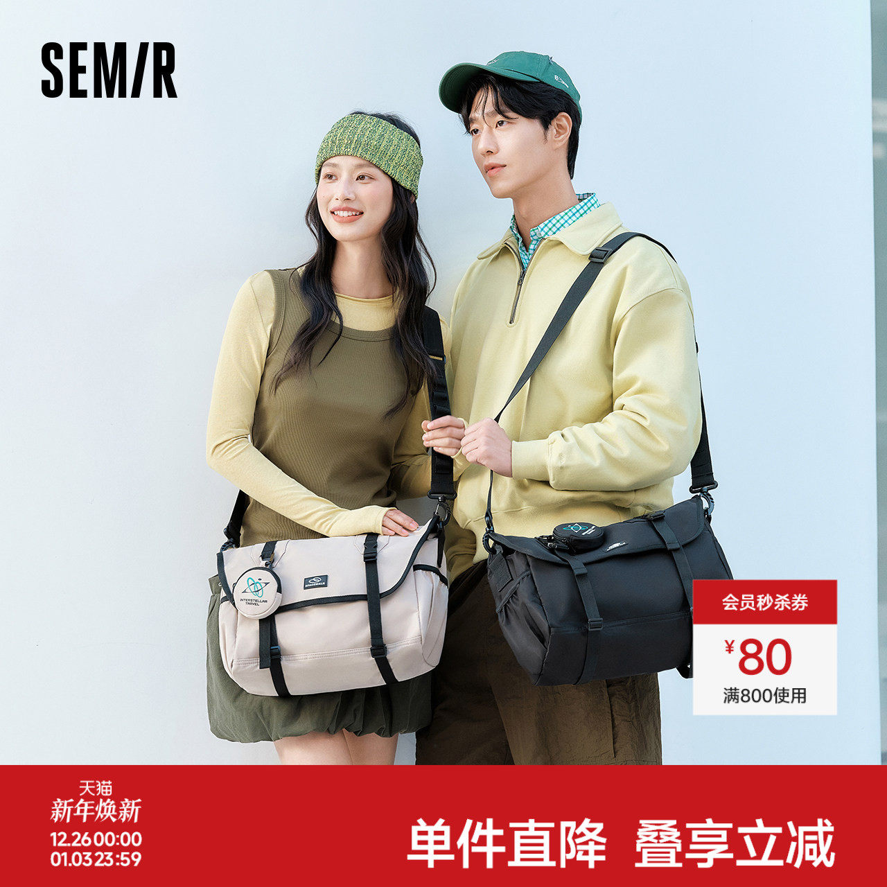 森马斜挎包男大容量旅行收纳袋2025新款邮差包多功能手提包情侣款