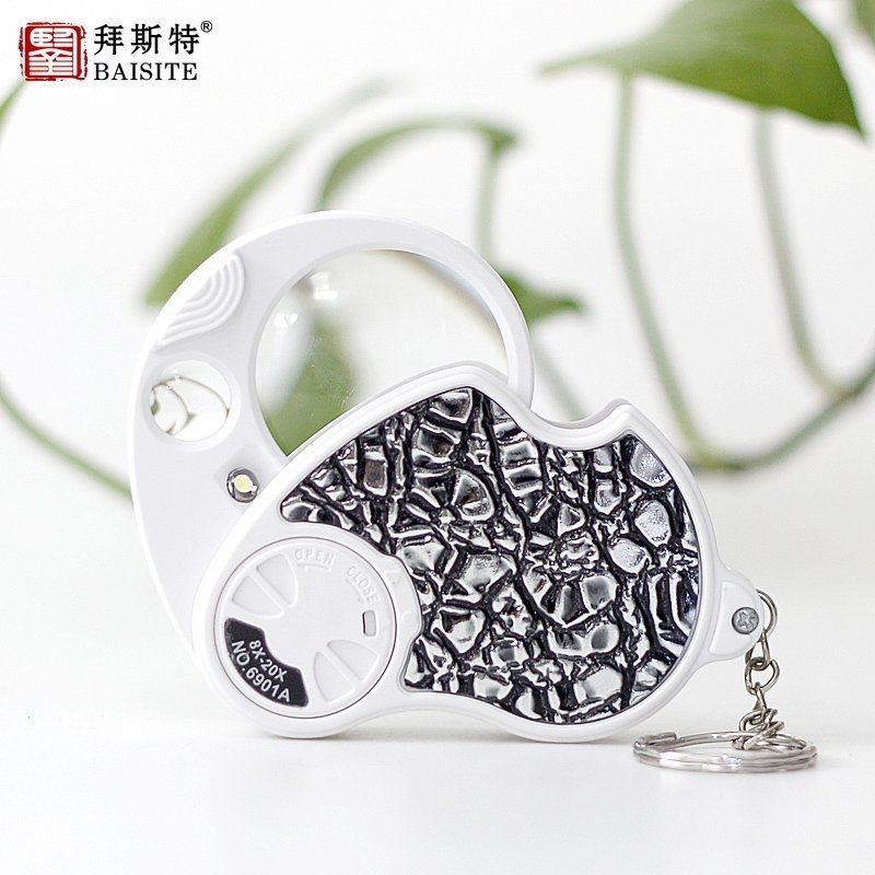 珠宝放大镜20倍带灯led袖珍便携折叠高清鉴定银古董文玩钱币邮票