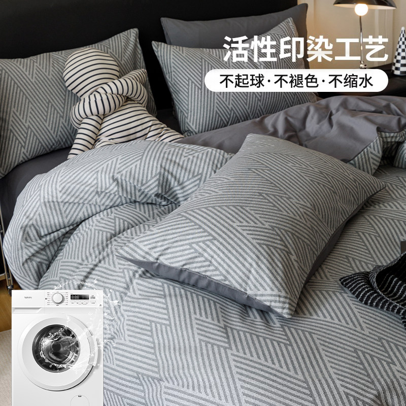 A类水洗棉双层纱四件套被罩非全棉纯棉床单人学生宿舍被套三件套