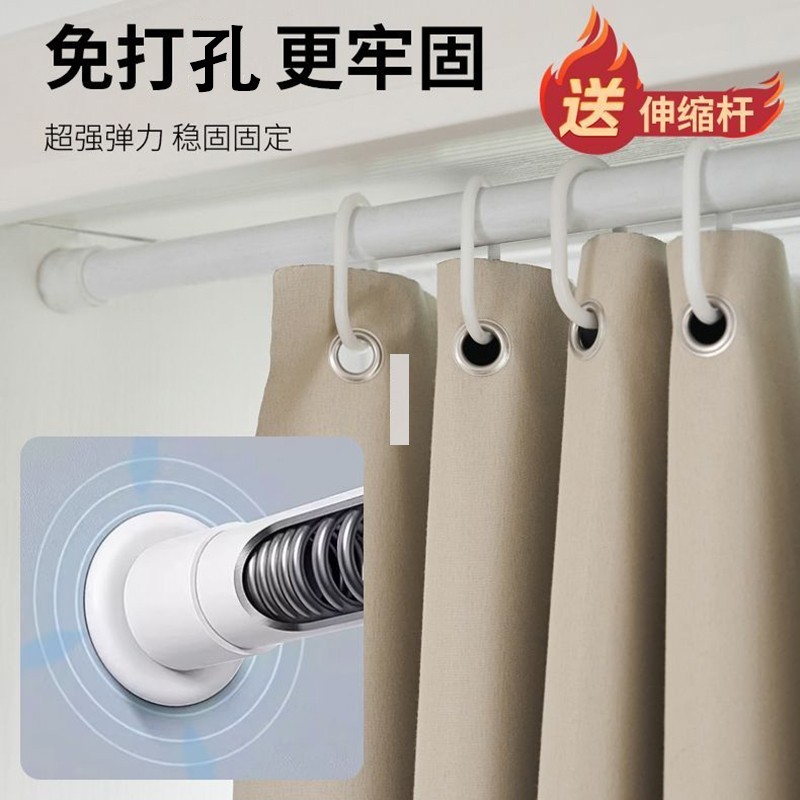 窗帘免打孔安装送伸缩杆遮光遮阳帘布简易小窗户短窗帘出租房宿舍