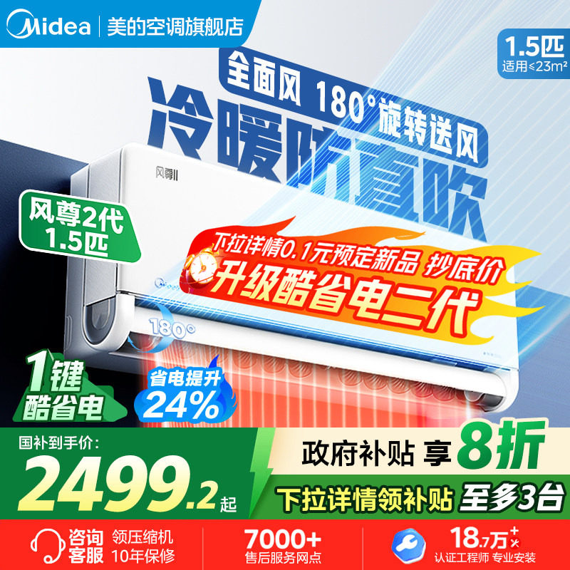 美的空调大1.5匹1匹新一级能效变频冷暖官方家用挂机风尊二代Pro
