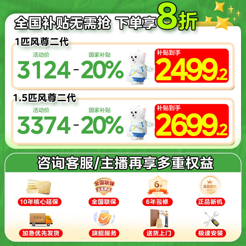 【国补8折】海尔空调1.5匹家用一级能效变频卧室挂机冷暖E1旗舰店