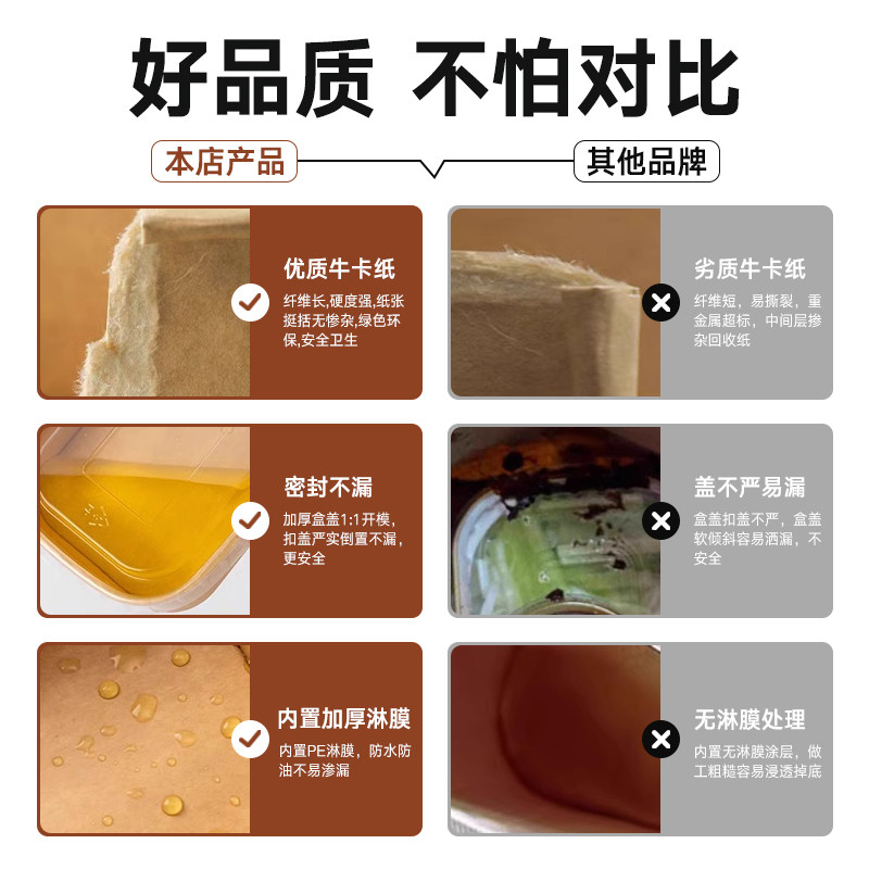 一次性餐盒食品级水果打包盒野餐便当盒牛皮纸饭碗带盖纸饭盒盒子
