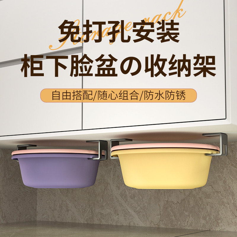 加厚实心脸盆收纳架盆子浴室柜下盆架卫生间免打孔厨房壁挂置物架