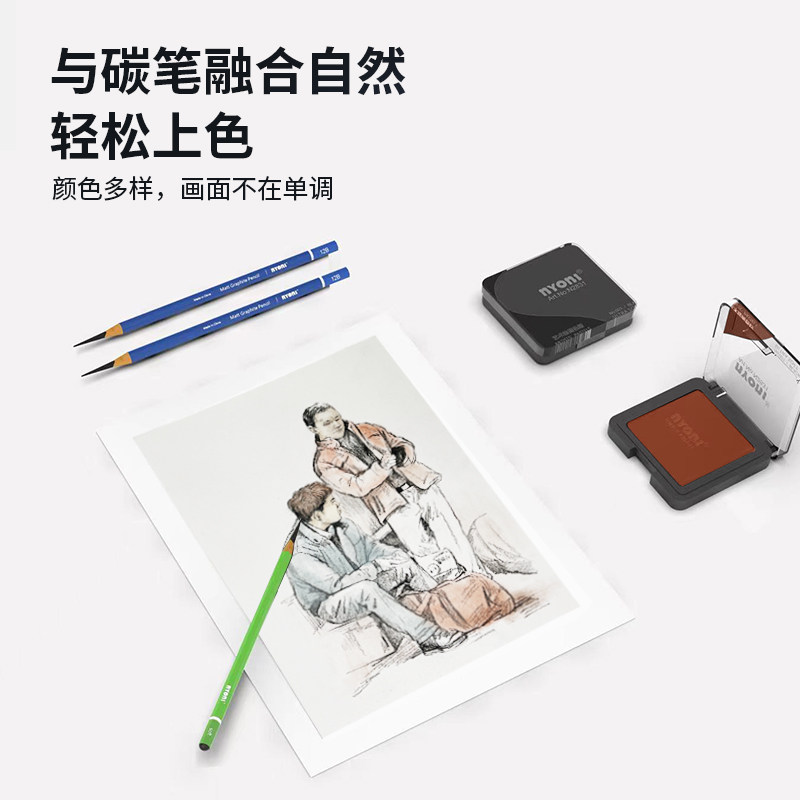 尼奥尼素描碳粉美术生专用速铺粉造型粉绘画色粉饼可水溶石墨炭精粉盒块面光影明暗涂抹笔揉擦刀黑色炭粉套装