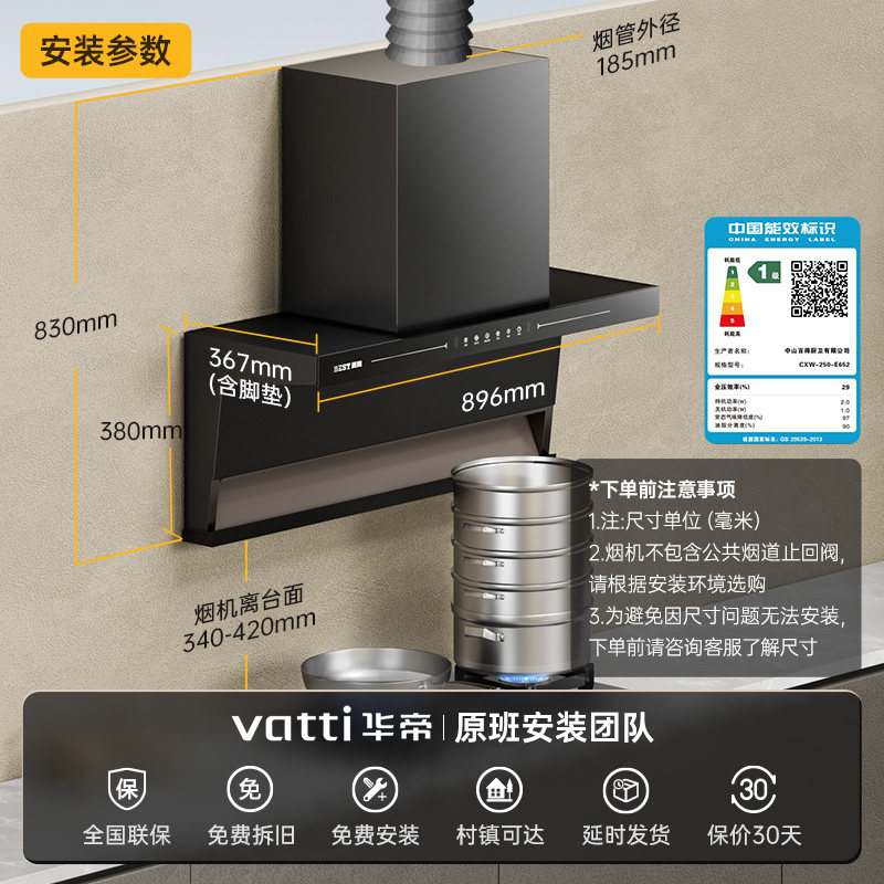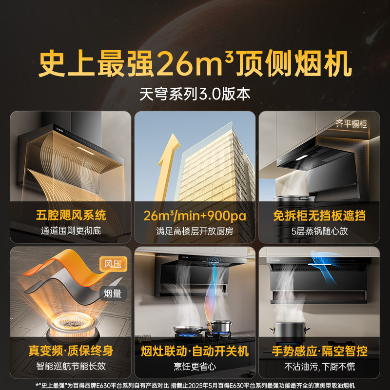 华帝百得抽油烟机家用厨房顶侧双吸变频大吸力自动清洗吸油烟机