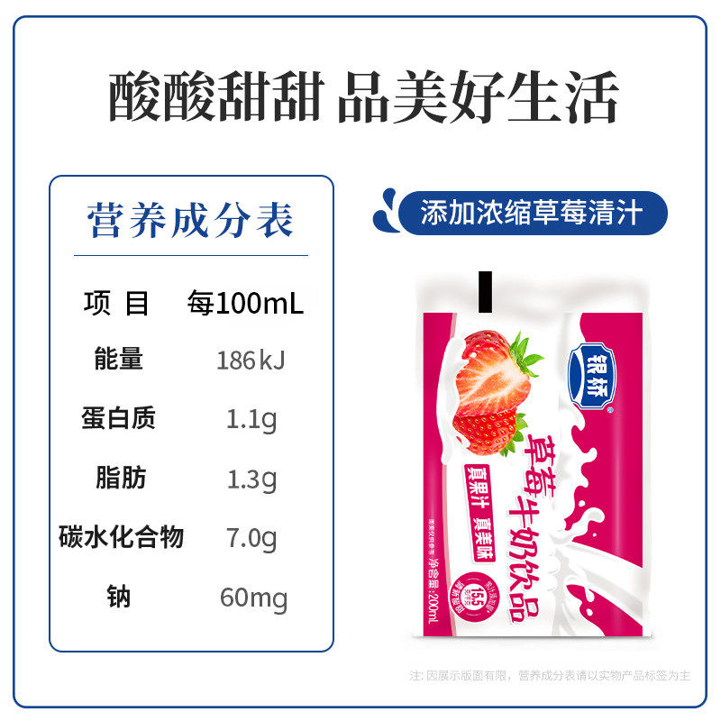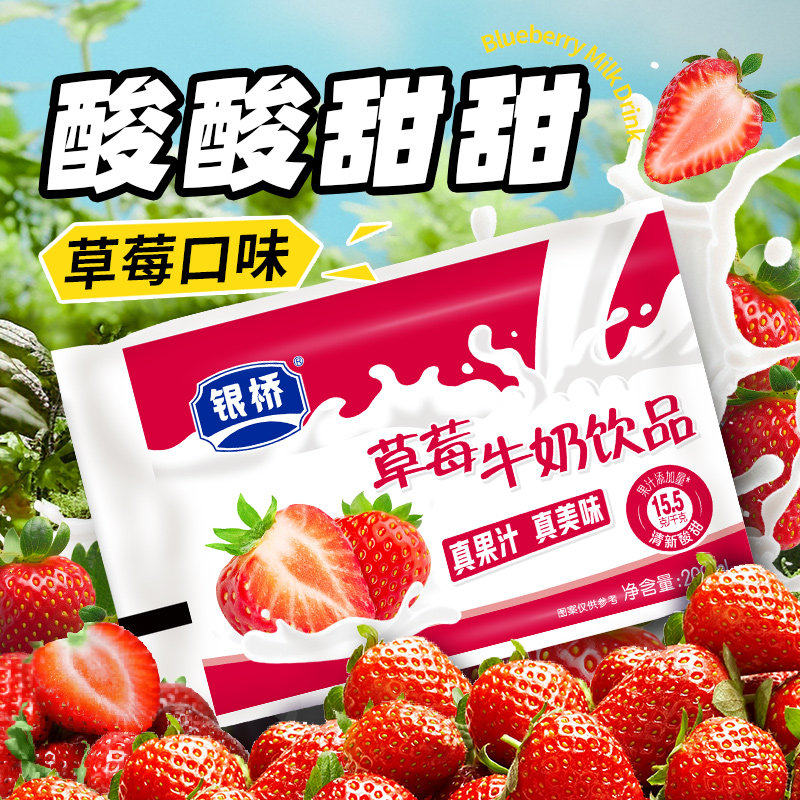 西安银桥草莓牛奶饮品菠萝葡萄白桃蓝莓含乳饮料早餐奶袋装