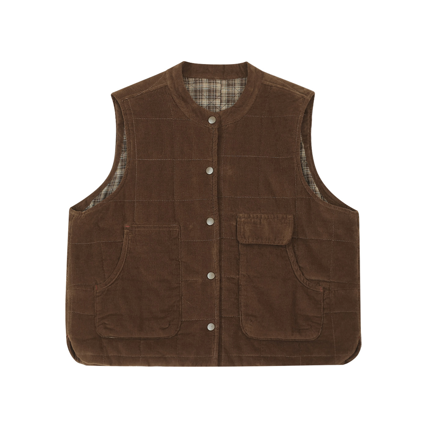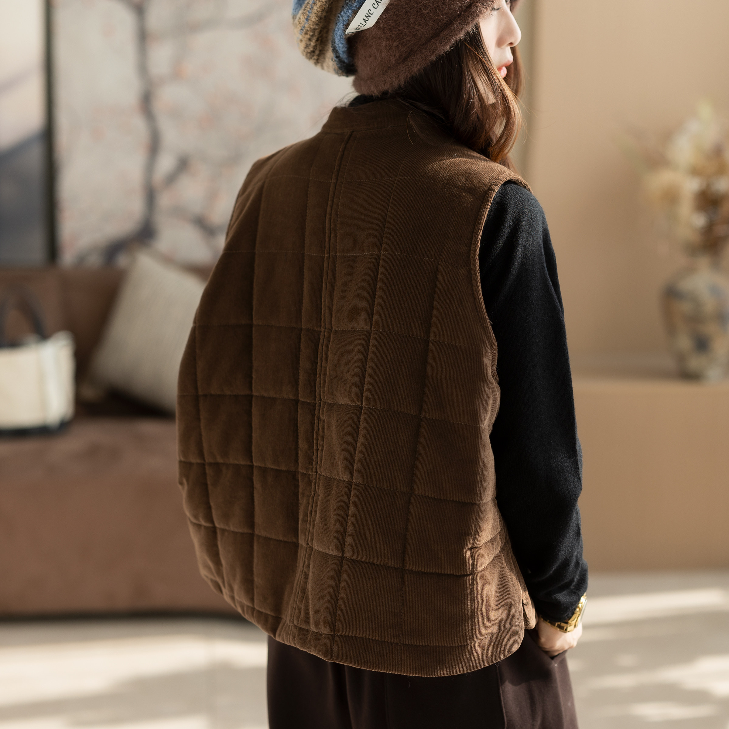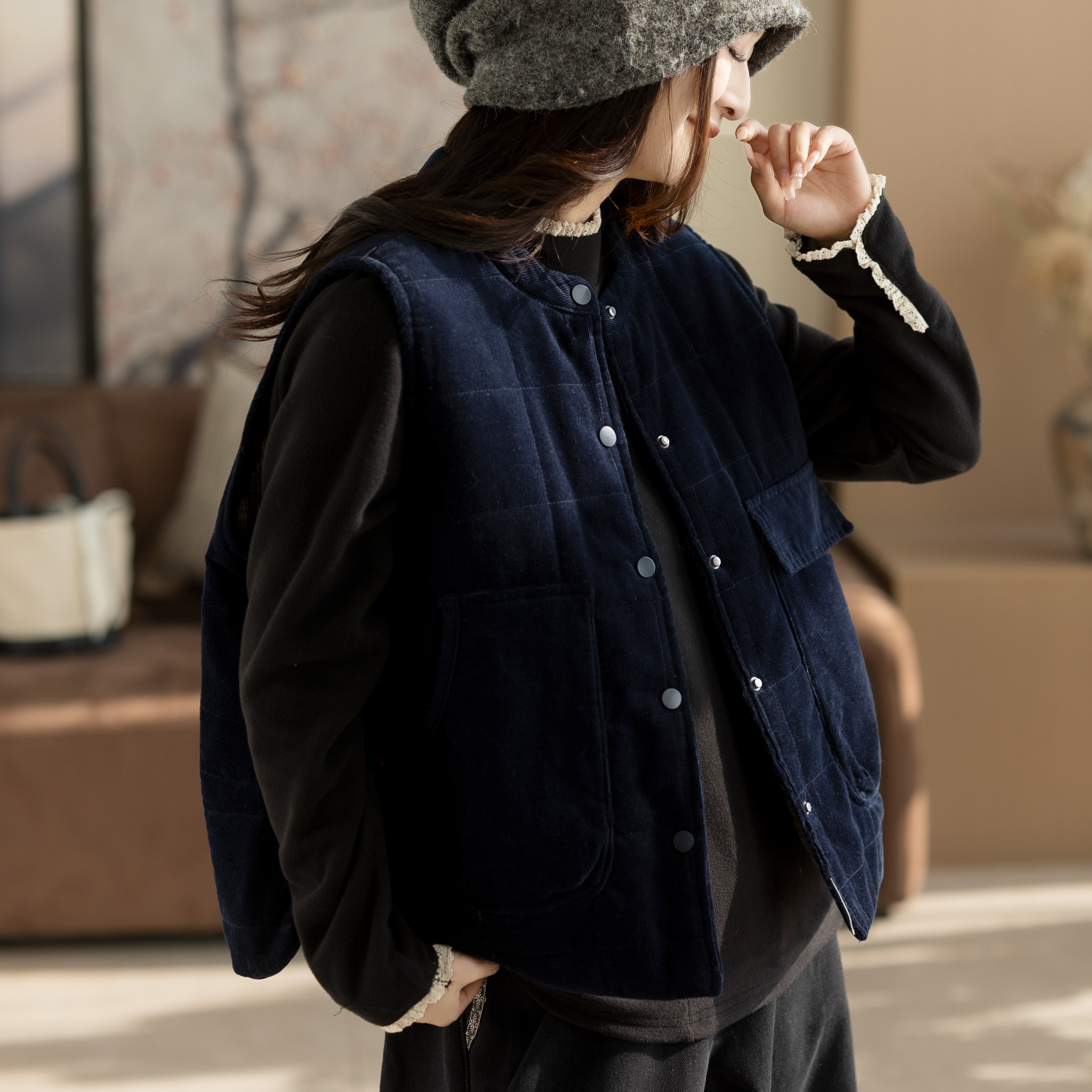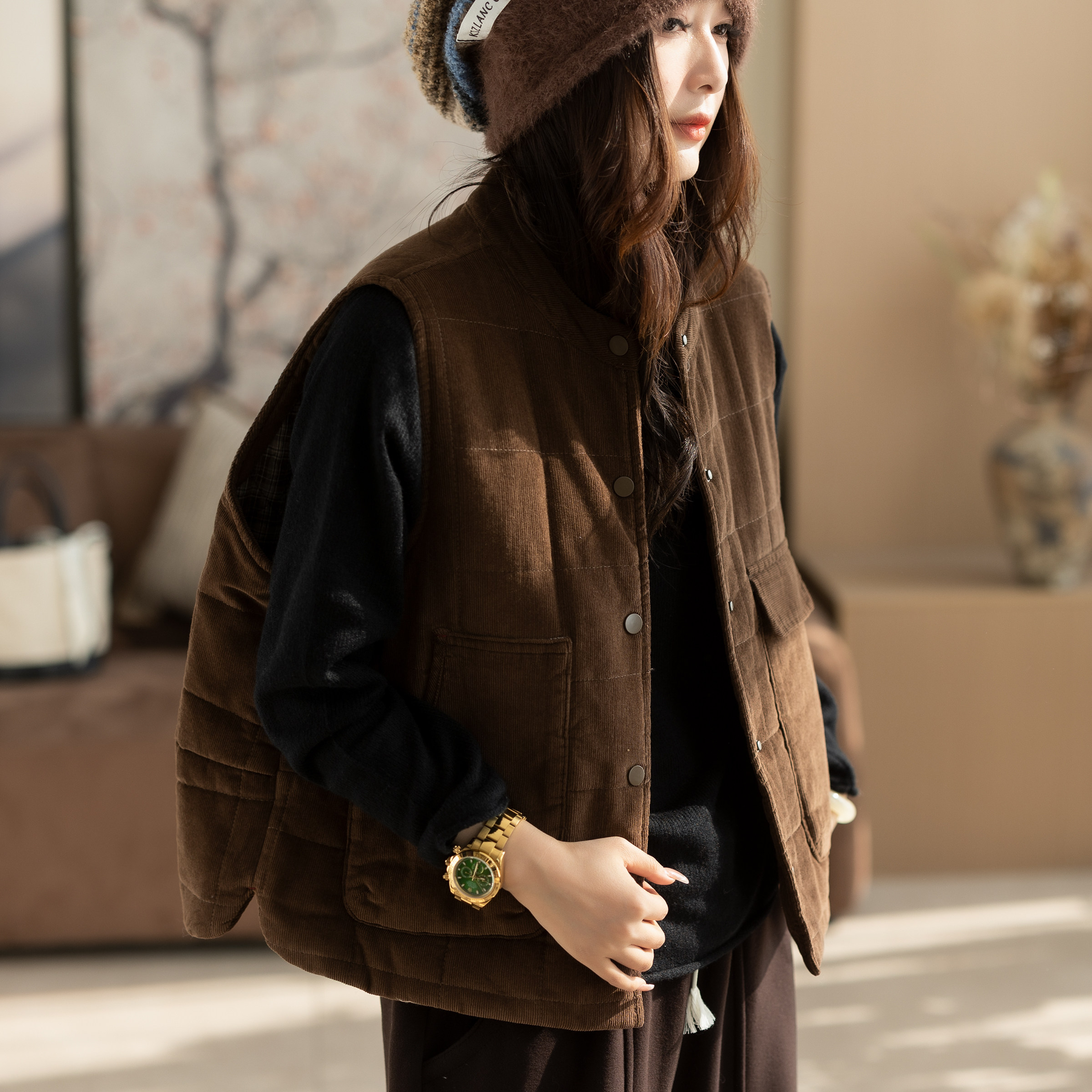 灯芯绒马甲女秋冬新款女士夹棉宽松坎肩全棉通勤流行女装马夹外套