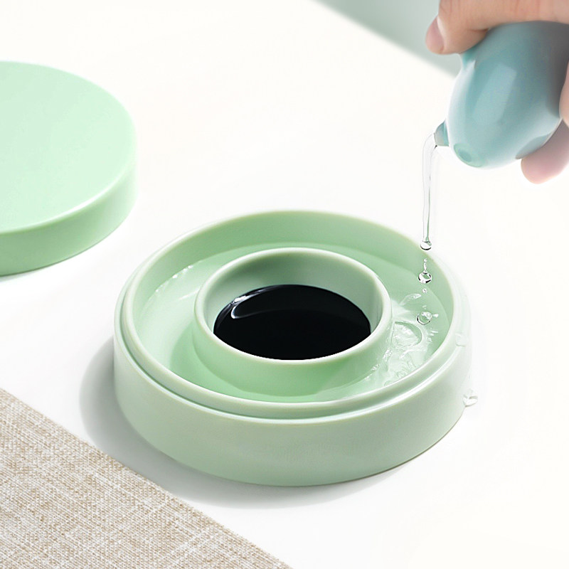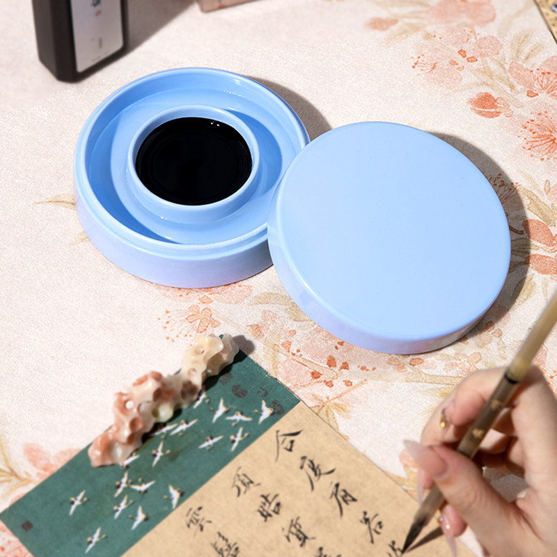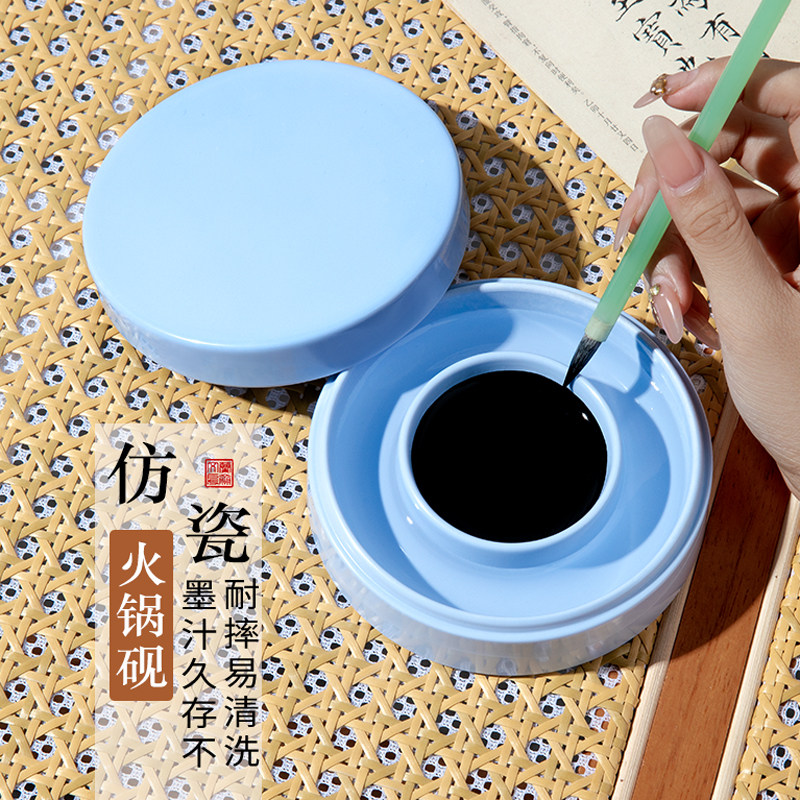 仿瓷火锅砚台书法专用多功能毛笔墨汁防蒸发不干墨砚台带盖保湿防蒸发墨盒墨池文房四宝入门初学者练习水碟