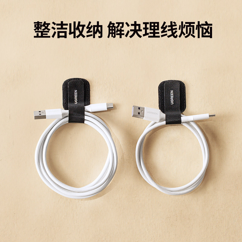 绿联数据线收纳理线器插排充电线固定器网线走线夹自粘魔术贴扎带