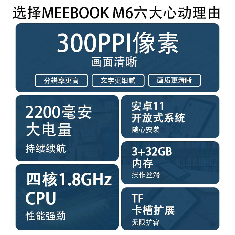 MEEBOOK M6电纸书 6英寸电子阅读器 300PPI高清墨水屏 32G内存