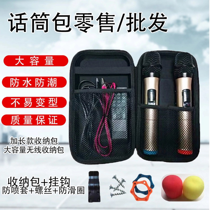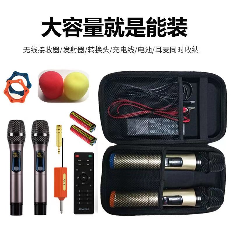 多功能无线话筒收纳包大容量数码收纳盒双麦克风收纳包帆布防护盒