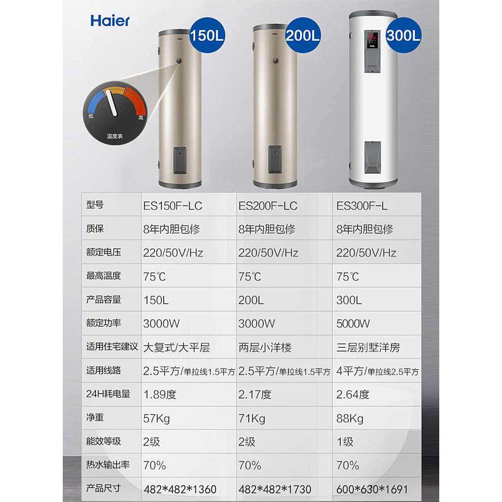 Z海尔电热水器200升150L家用洗澡大容量理发店商用竖立落地储水式