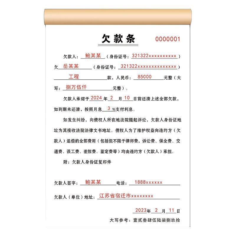 欠款条借条个人正规模板有法律效应的公司欠条本欠款单据借支合同