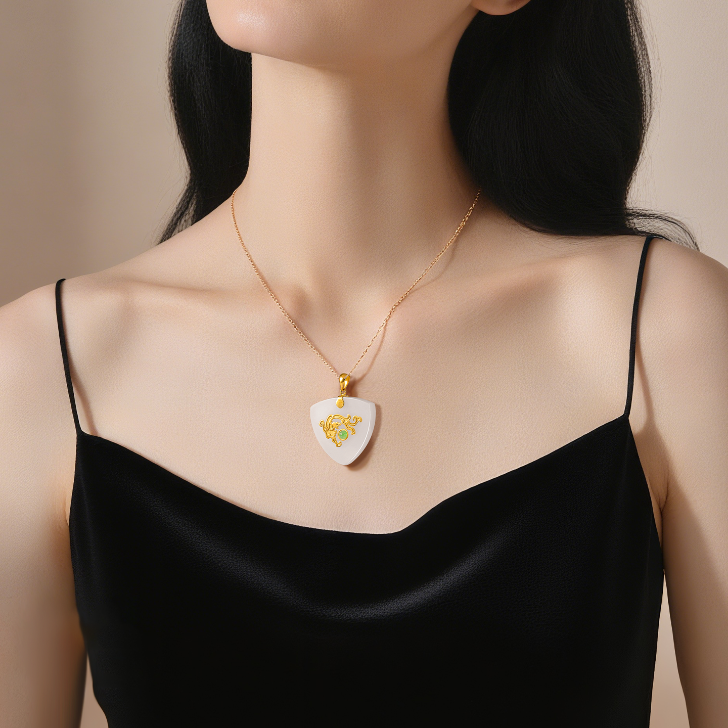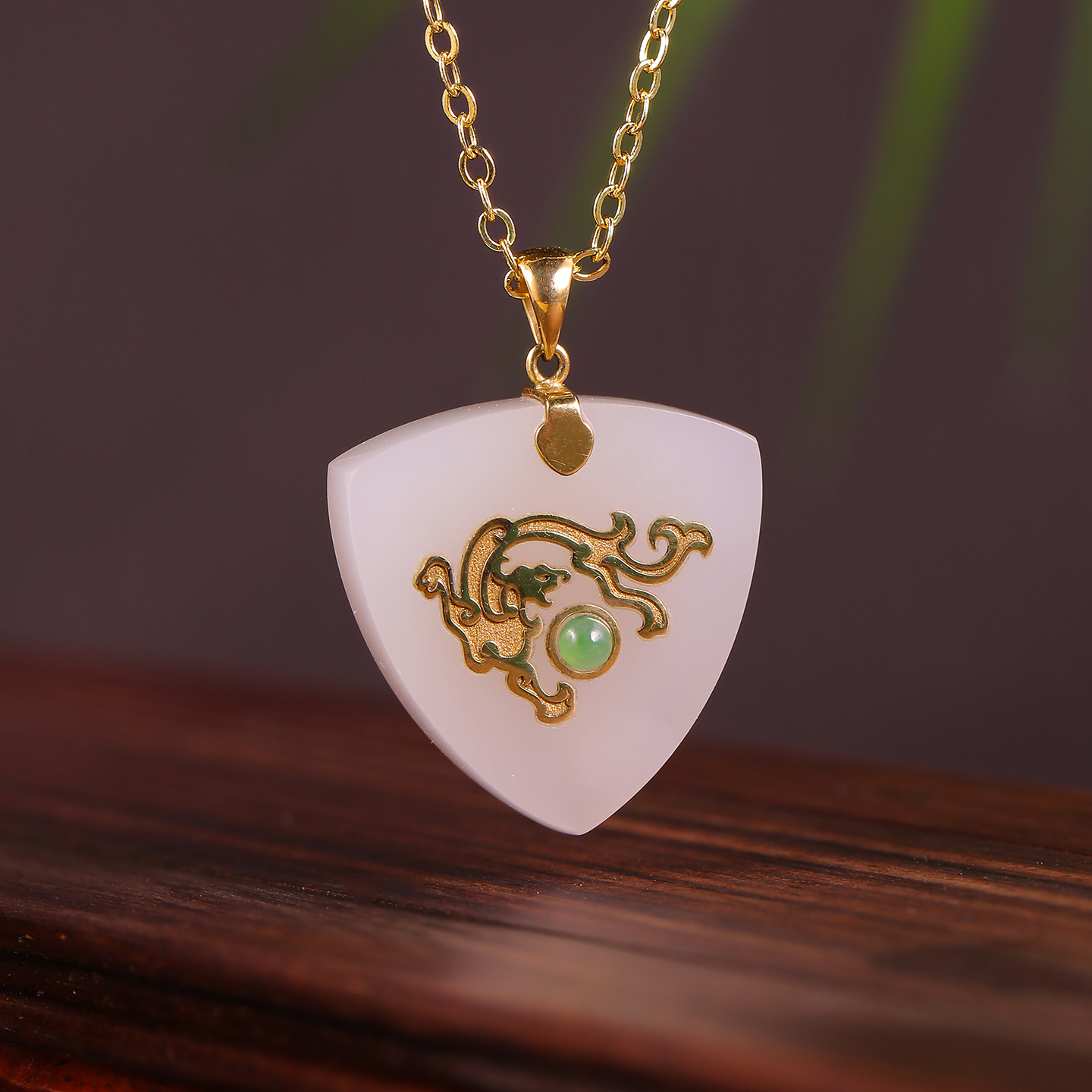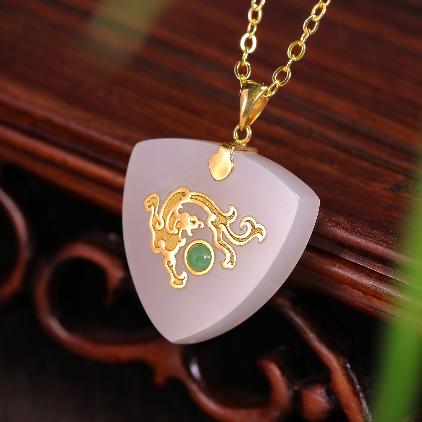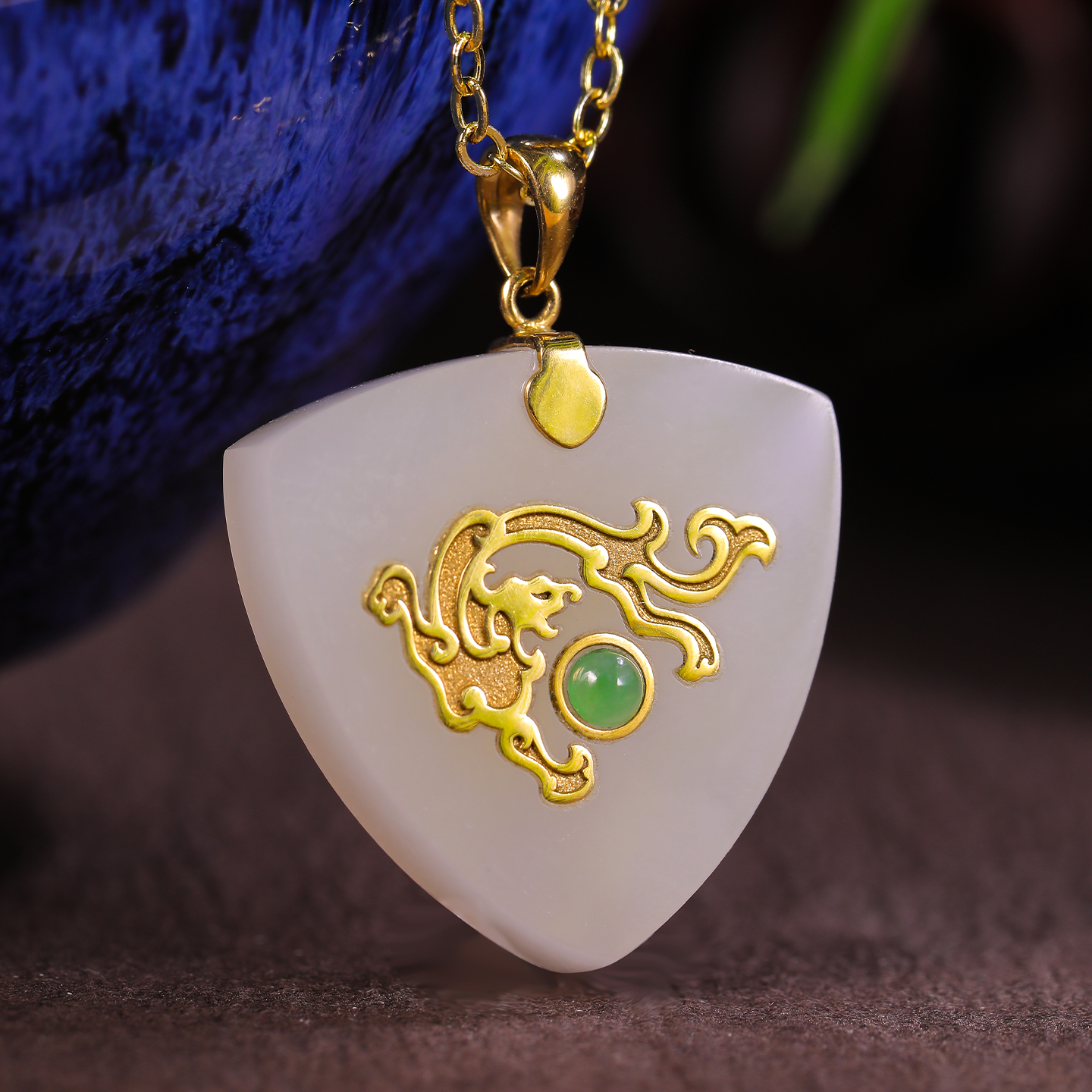 和合玉器和田玉羊脂白玉18k金镶玉生肖龙挂件本命年玉石坠子项链