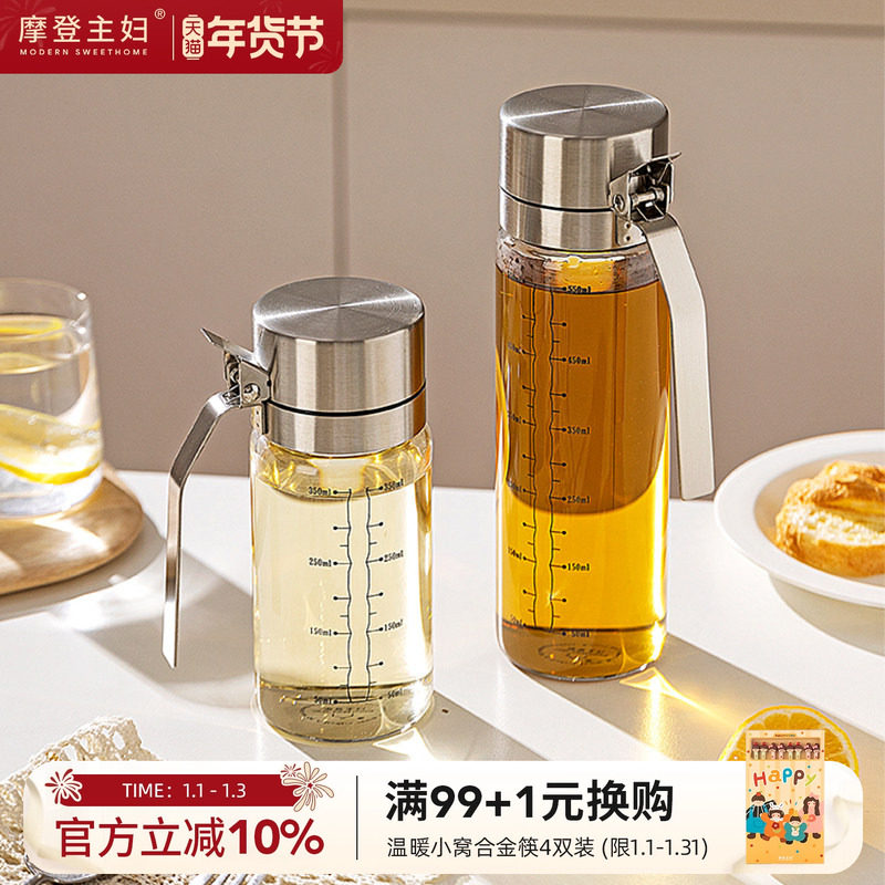 摩登主妇304不锈钢油壶厨房家用酱油醋调料瓶不挂油玻璃油瓶油罐