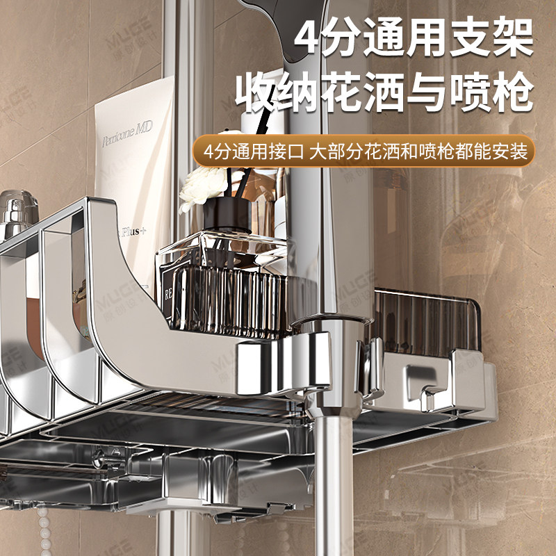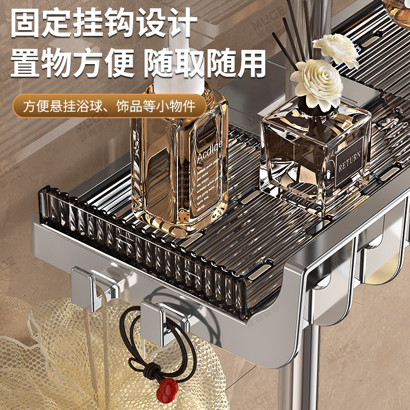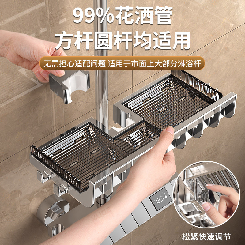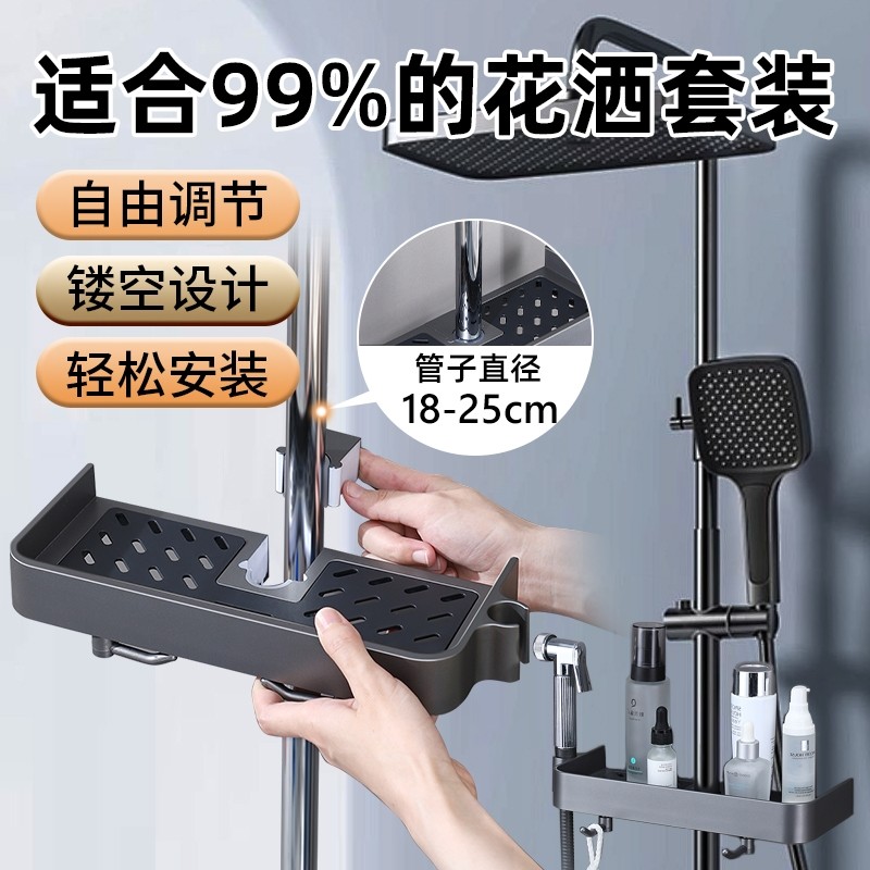 浴室免打孔家用花洒支架托盘置物架淋浴房沐浴露卫生间淋浴杆挂架