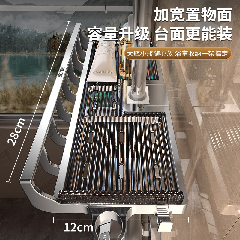洗手间吸盘水龙头置物架卫生间浴室免打孔沥水壁挂式收纳架可拆卸