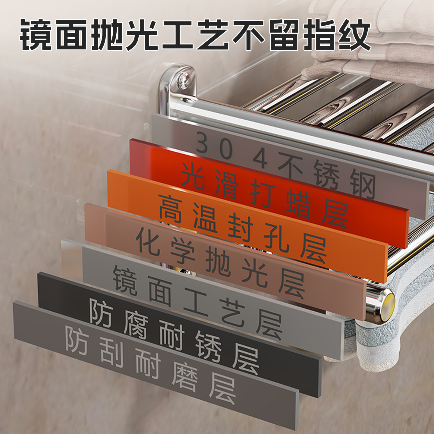 洗澡浴巾放哪里?浴室置物架浴巾架一体挂杆淋浴房洗澡间双杆挂架