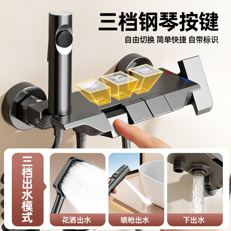 精铜淋浴混水阀冷热水龙头开关浴室卫生间洗澡花洒套装沐浴三出水