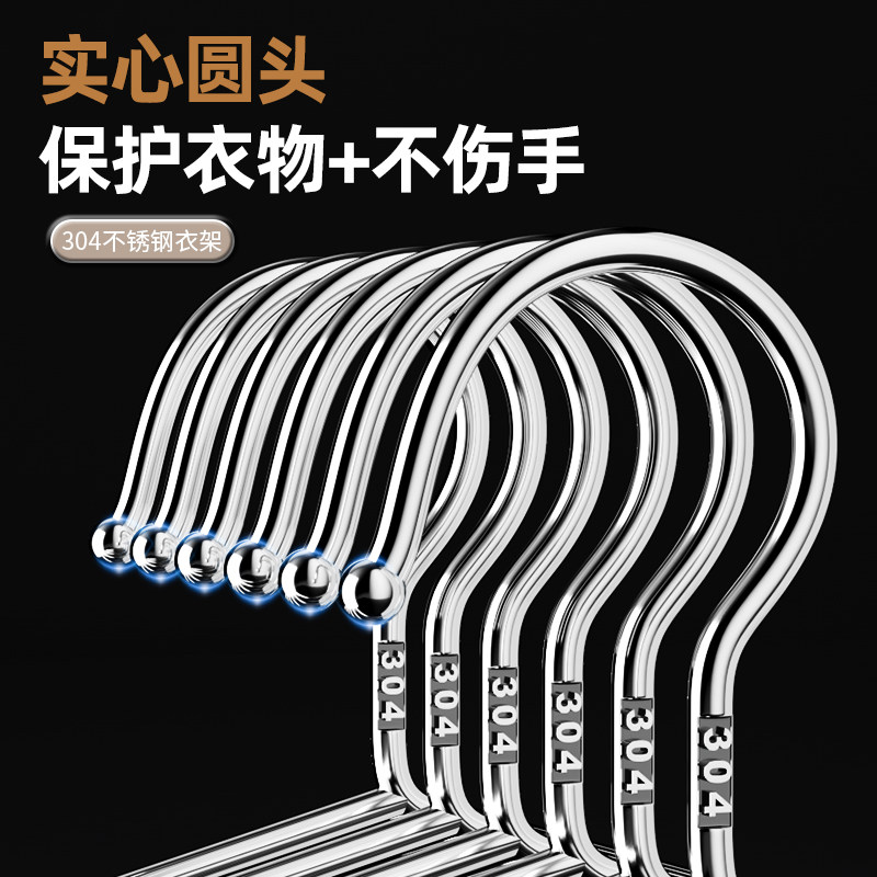 304不锈钢衣架实心晾晒防滑家用成人晾衣架晒衣架收纳衣服挂裤架