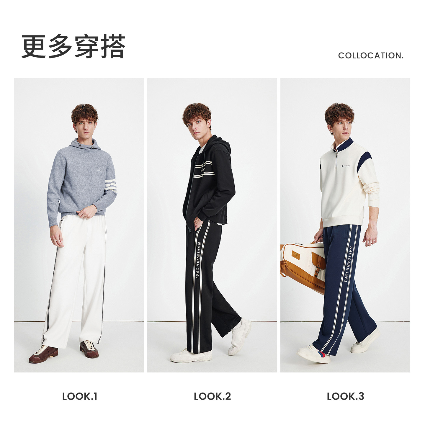 Navigare意大利小帆船定位条休闲裤男秋冬新款磨毛阔腿裤卫裤