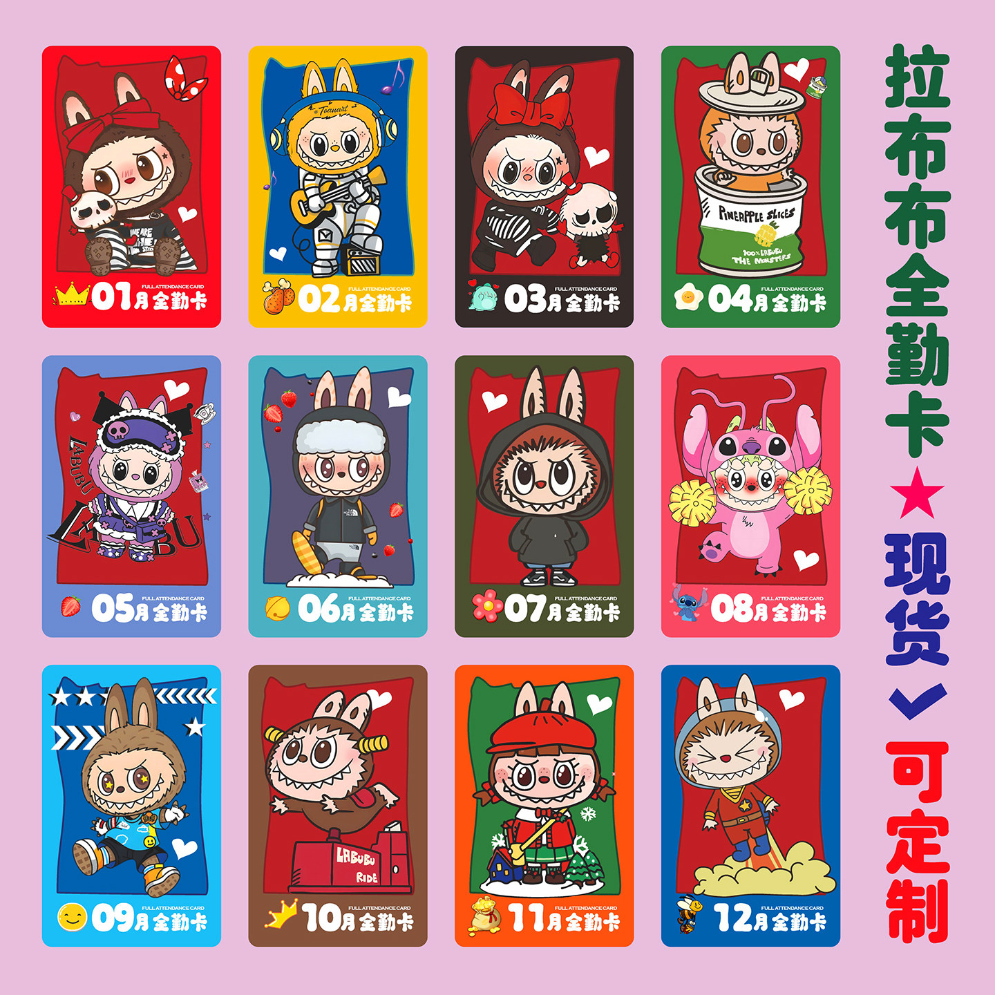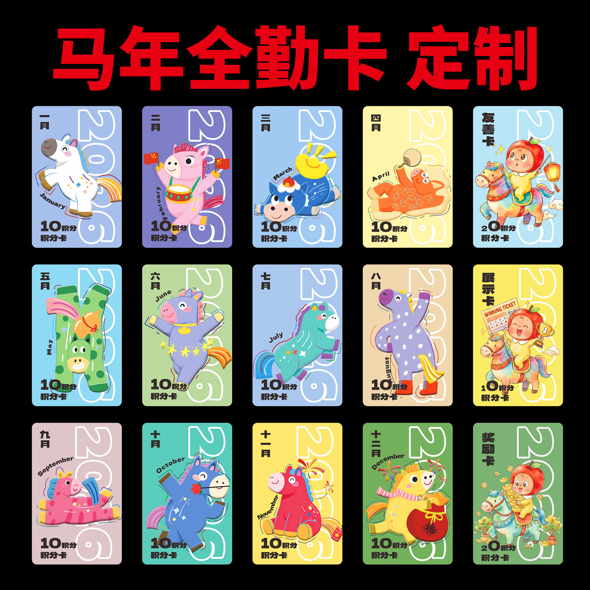 全勤卡定制艺术类满勤卡乐器古筝出勤卡积分卡定制加LOGO卡通集章卡定做设计印刷培训机构集分币女孩子喜欢的
