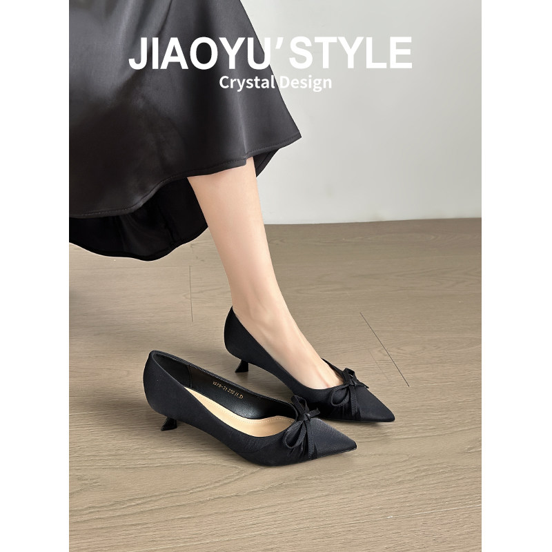真皮~骄屿 蝴蝶结细跟高跟鞋女方头玛丽珍鞋小个子高级感气质单鞋