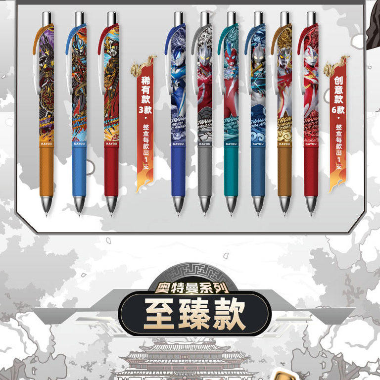 卡游文具 奥特曼中性笔光耀版第18弹按动自动水笔儿童圆珠笔学习用品专用小学生0.5mm黑色签字盲盒笔日常书写