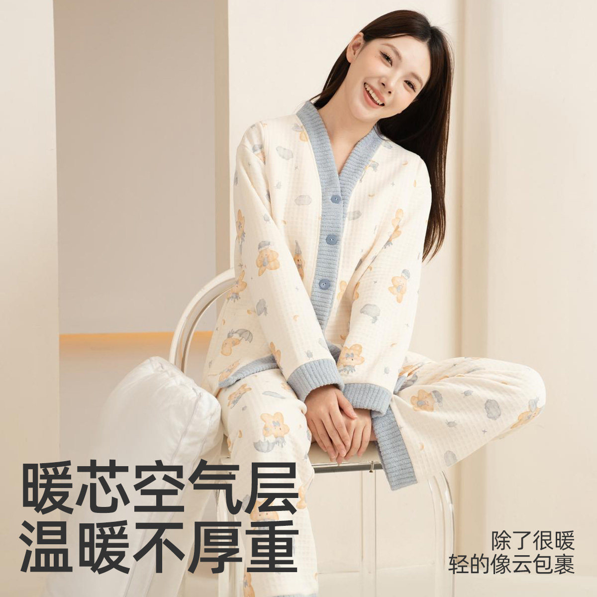 空气棉月子服秋冬产后纯棉加厚款产妇哺乳睡衣冬季孕期孕妇家居服