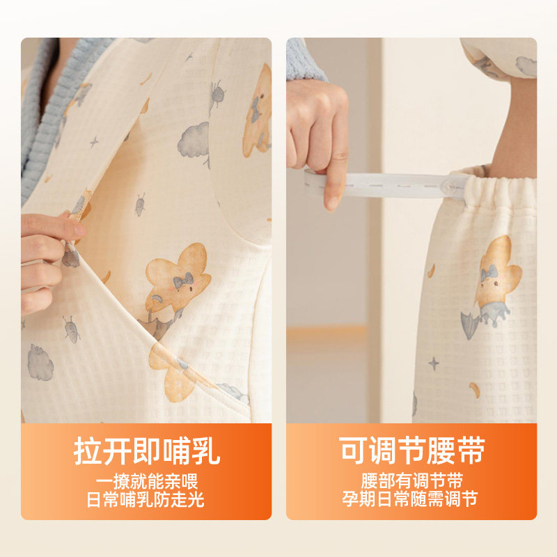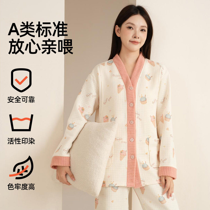 婧麒月子服秋冬产后空气棉加厚孕妇睡衣哺乳产妇待产喂奶家居服