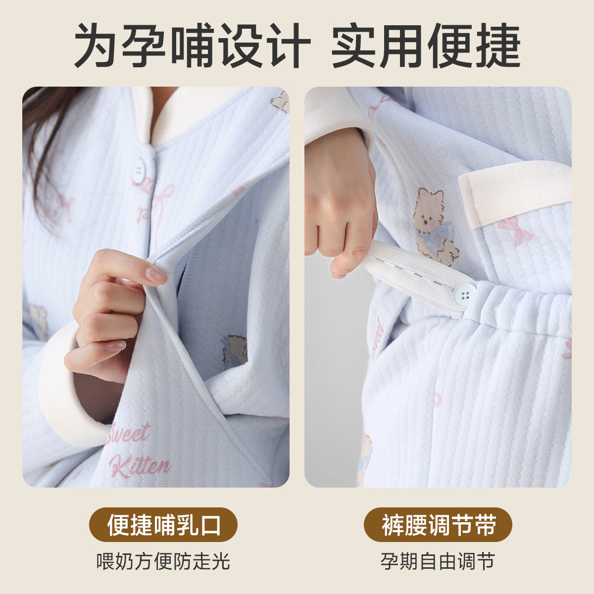 空气棉月子服秋冬产后纯棉加厚款产妇哺乳睡衣冬季孕期孕妇家居服