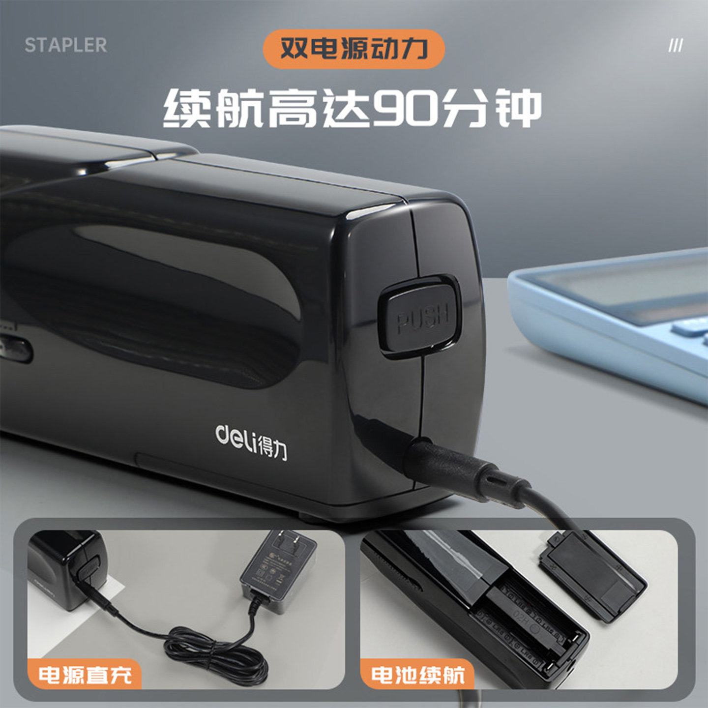 得力0489电动订书机全自动智能感应式装订机办公学生省力订书器
