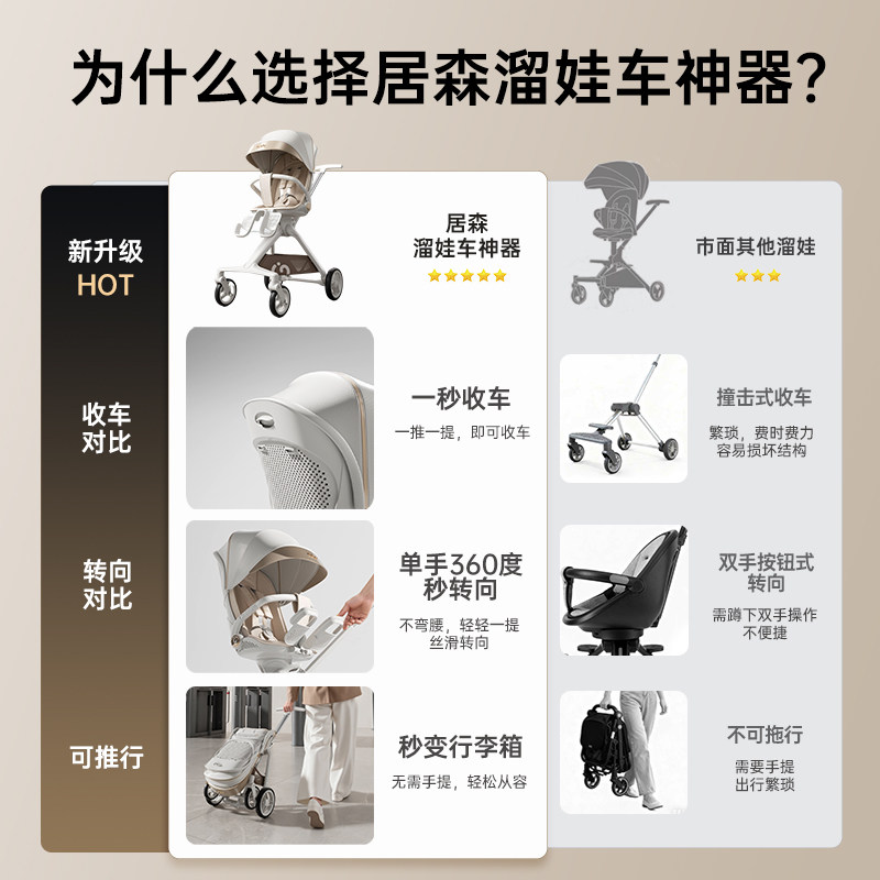 GSO居森遛娃神器高景观轻便折叠双向可坐躺宝宝溜娃手推车婴儿车