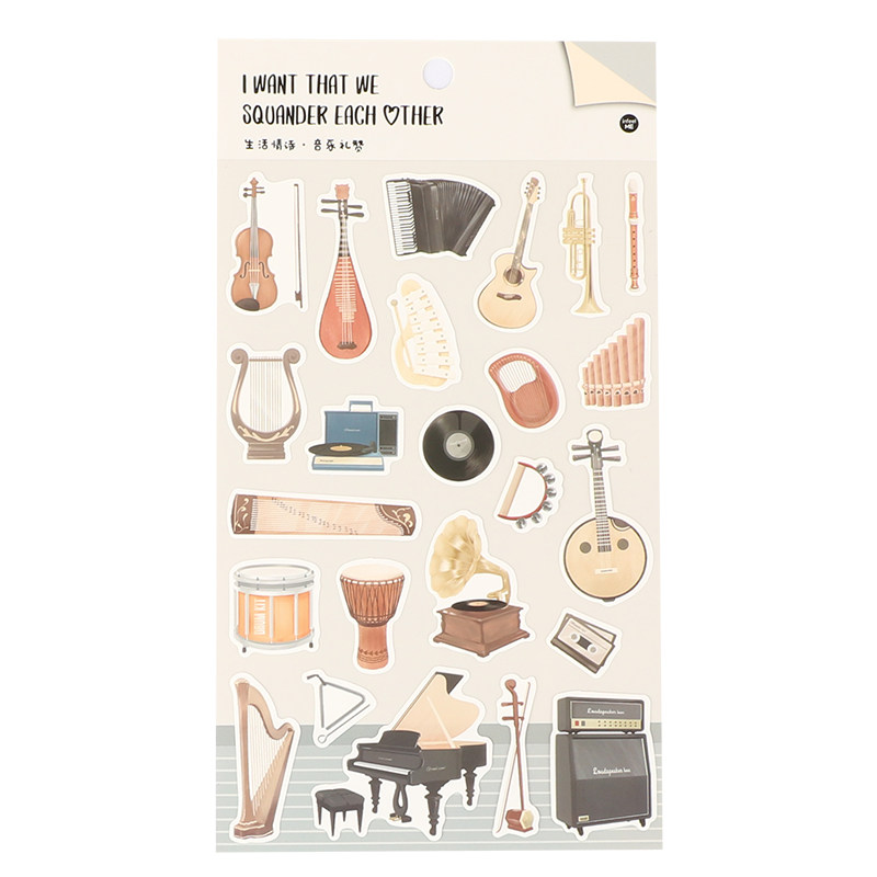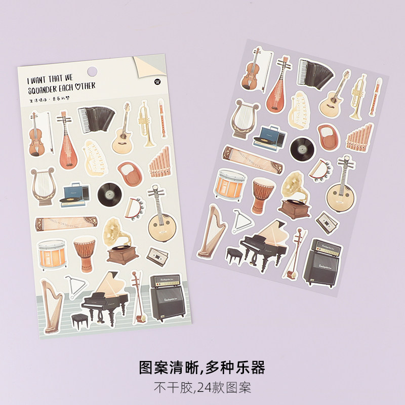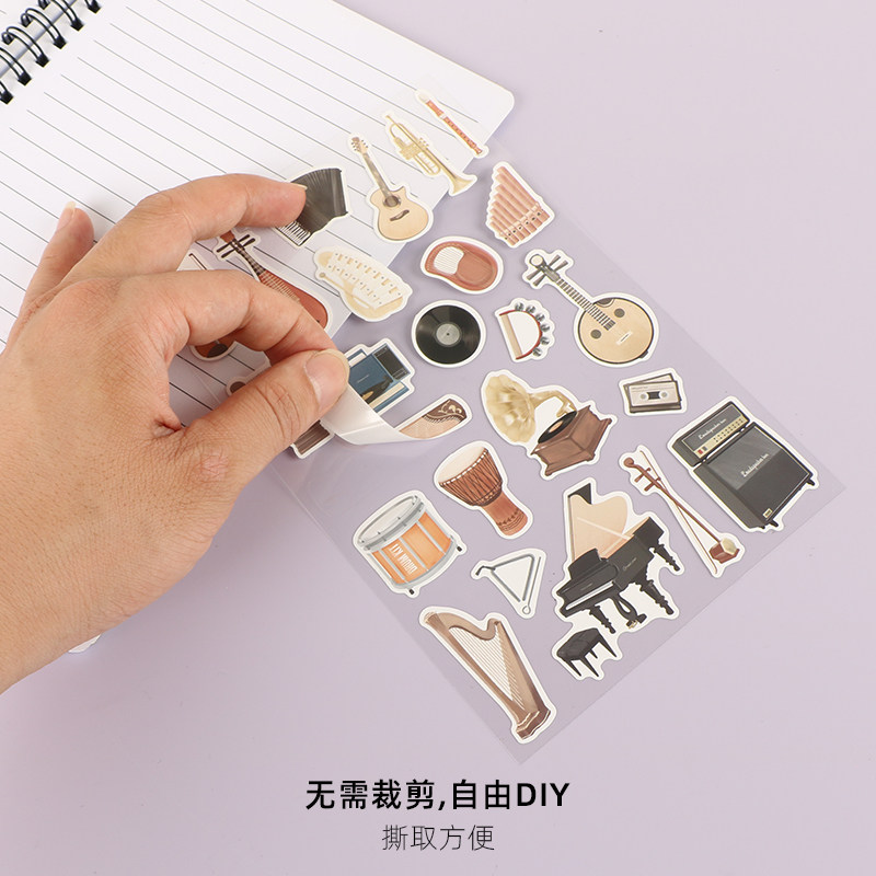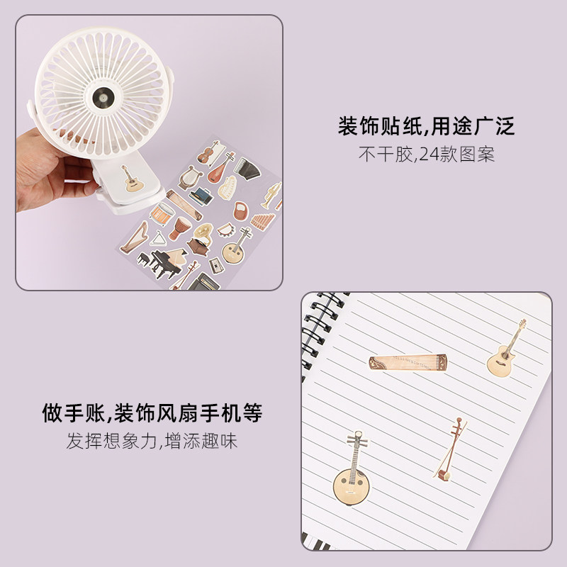 钢琴手账贴纸不干胶提琴吉他古筝琵琶中阮DIY装饰纸学生音乐礼品