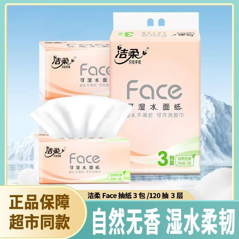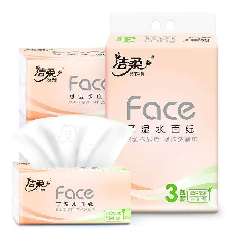 洁柔无香可湿水抽纸30包整箱3层120抽卫生面巾纸家用装香味原生