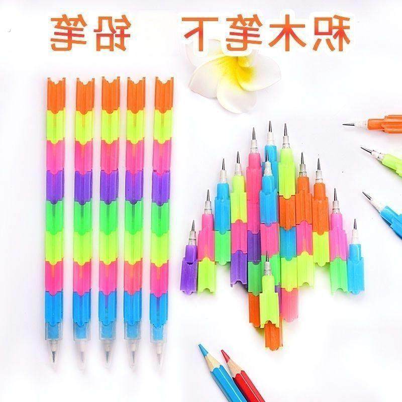 积木拼装铅笔可拆装创意免削多功能彩虹学生免削铅笔积木竹节新品