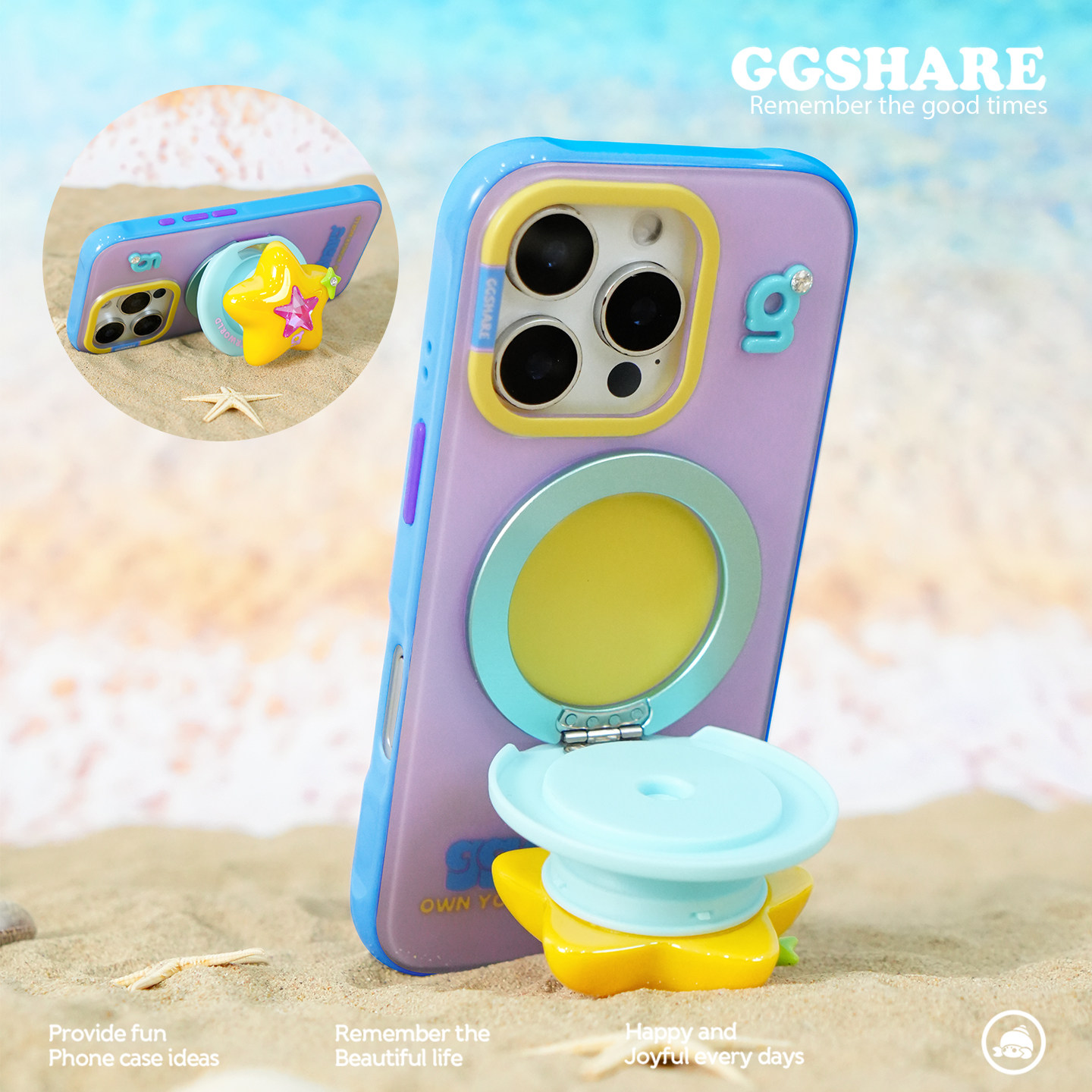 GGSHARE寄居蟹原创星星圈圈艺术适用苹果17手机壳新款iPhone16 promax保护套防摔带磁吸支架卡通趣味折叠镜子