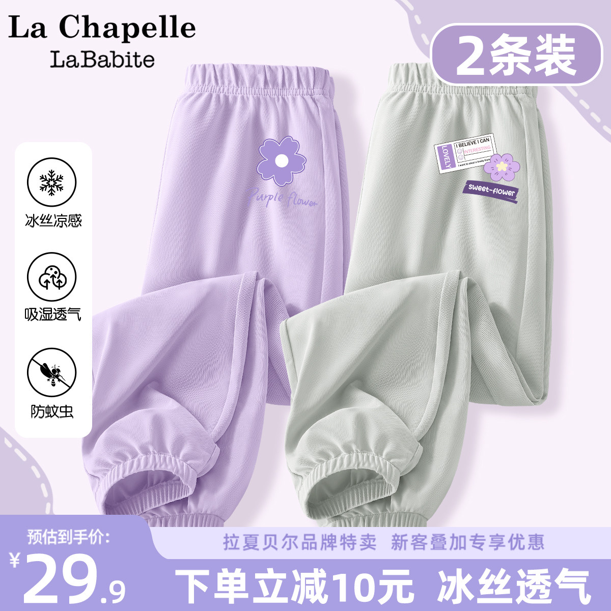 拉夏贝尔联名女童夏季冰丝防蚊裤2025新款中大童夏装薄款儿童裤子