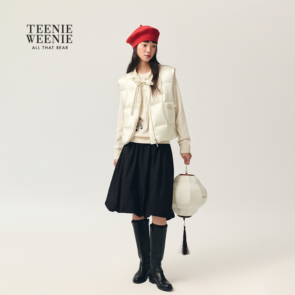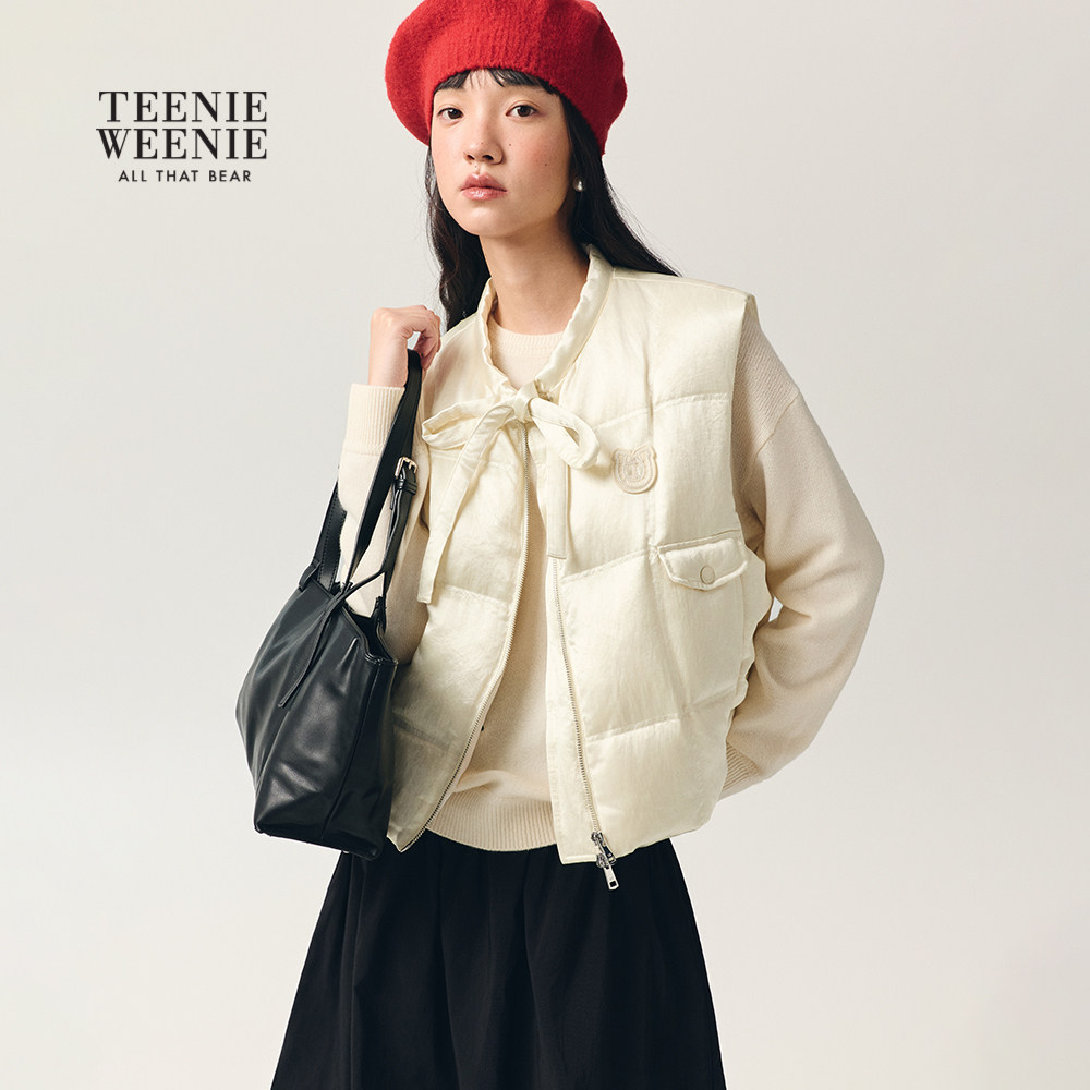 TeenieWeenie小熊女装羽绒服26春季新款飘带领口光泽感新中式马甲