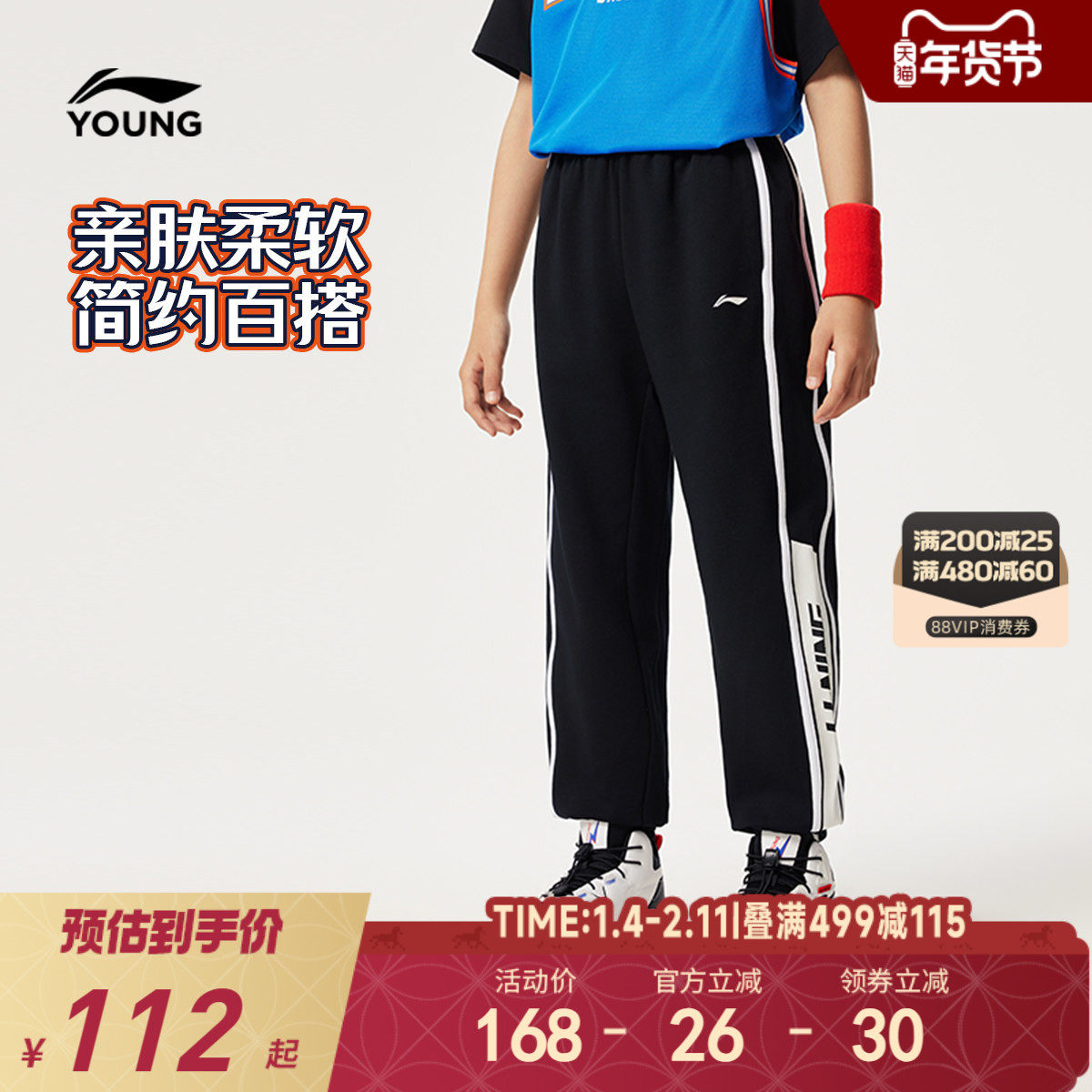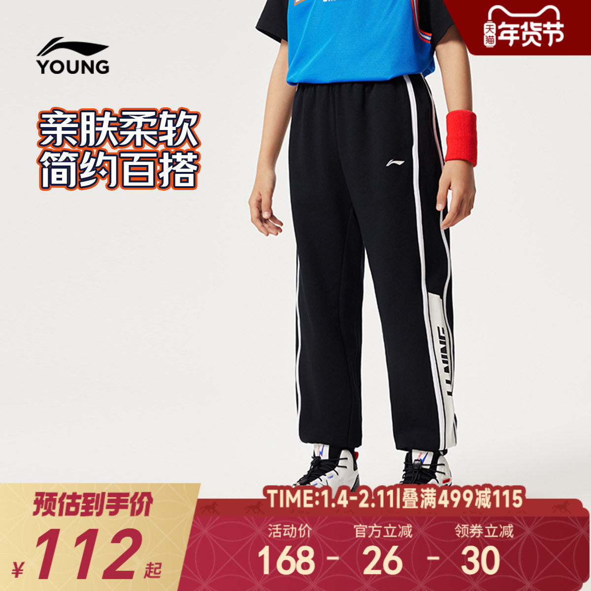李宁儿童针织休闲运动裤2025新款秋冬款男童装大童青少年裤子秋装