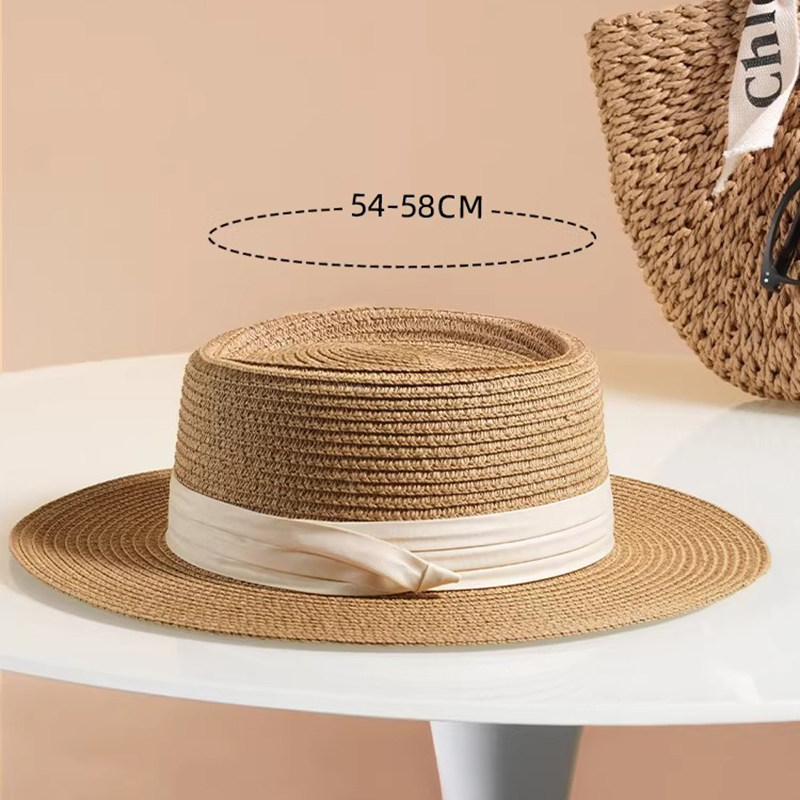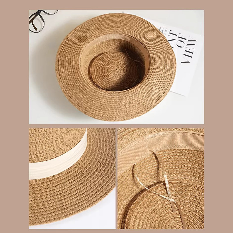 2026新款法式平顶草帽女大头围海边沙滩礼帽编织防晒太阳帽子夏季