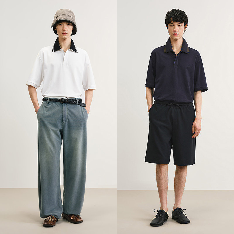 速写男装春夏新款男士短袖polo衫宽松廓形翻领上衣优雅运动风