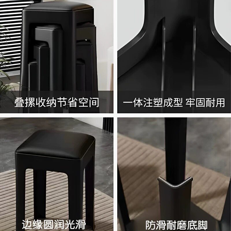 塑料加厚凳子可叠放商用软包高板凳现代简约客厅餐桌椅子成人方凳